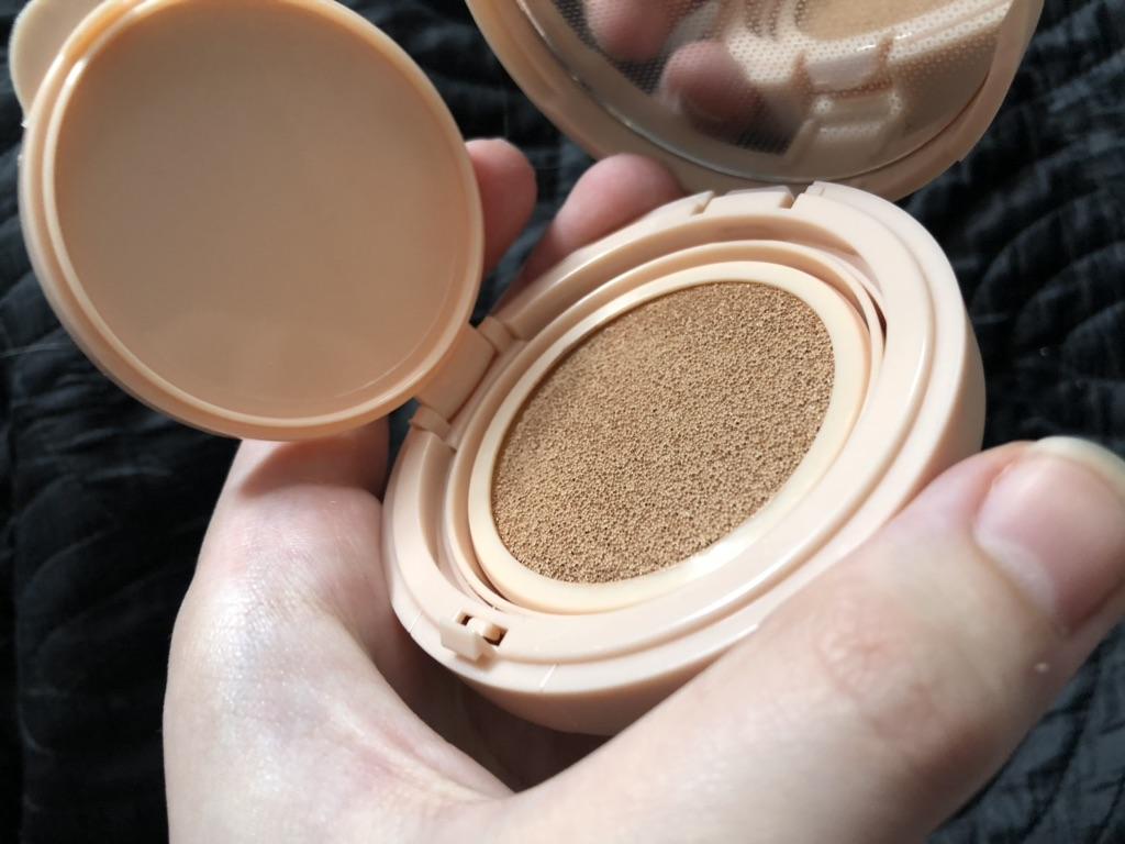 The cushion is super, not too light and looks natural, the sponge is convenient for application, but there is very little of it there
