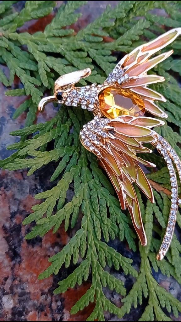 Phoenix brooch 🔥 The phoenix is a mythological bird that is the personification of rebirth, the fire element, the sun and immortality. It is a symbol of eternal life and rebirth. Also, this bird symbolizes the cycle of life and rebirth. The seller has five color options, I liked the yellow bird 💛. A successful combination of enamel and stones make the decoration bright and very beautiful I liked the brooch, I recommend it 🛍️😉 If the review was useful, put it as a favorite ❤️😘 I received the goods in 37 days in a combined parcel ✈️ The track was tracked completely. The arrival at the point of issue was announced by sms 📲. Packaging: bubble bag and individual packaging. The product is free of defects. The pebbles are all in place, everything is painted neatly. Happy shopping and fast deliveries to everyone 🛍️☺️🚀🍁 And remember that every woman is a star, so shine brighter 🌟. PS: A fresh promo code is already waiting for you in my Telegram channel: Olena.joom.thebest.🎁🥰.