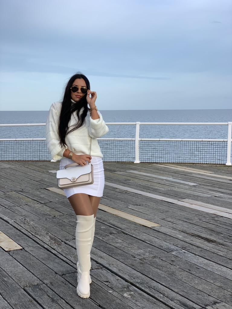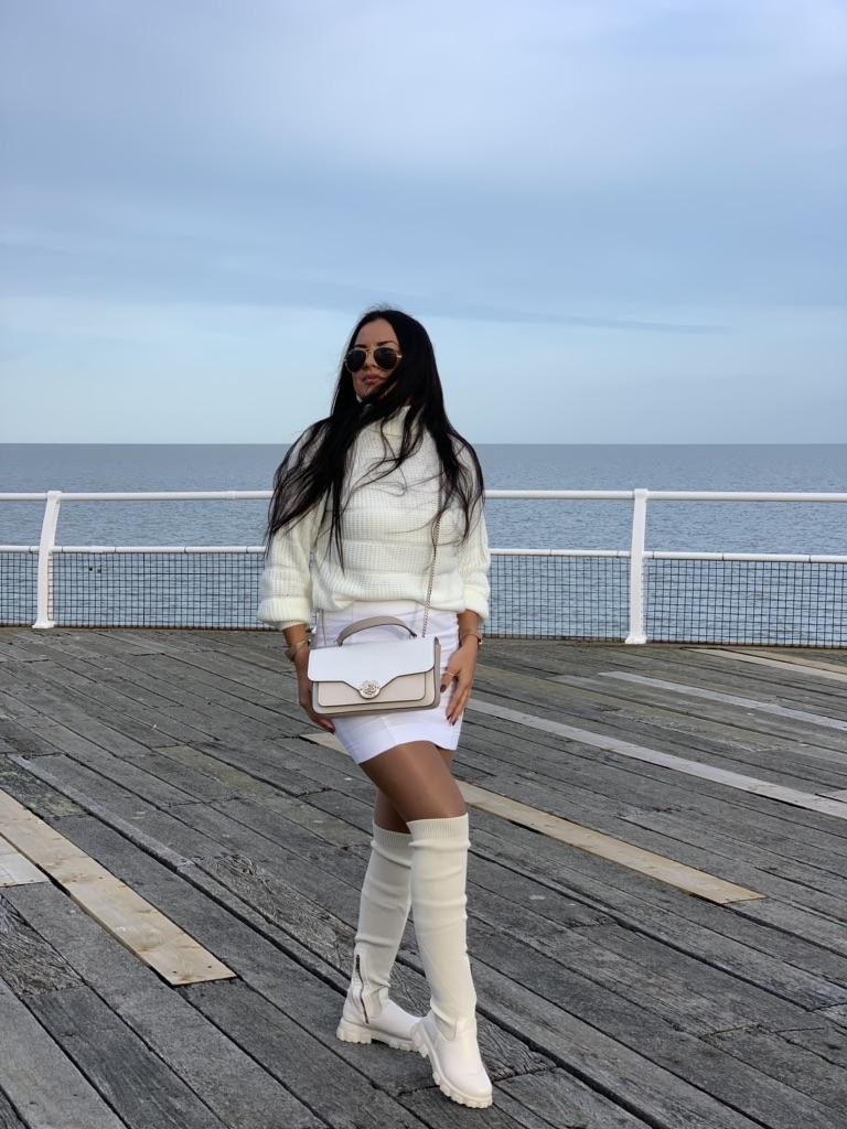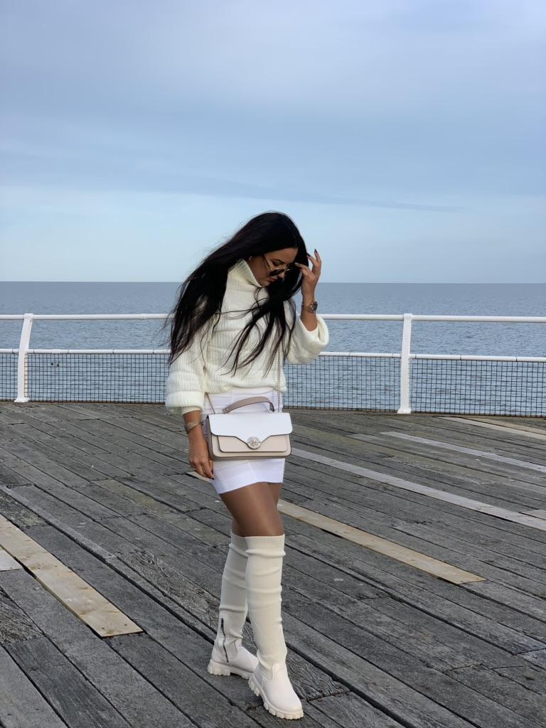 This is the coolest knitted sweater I've ever gotten myself 😍 I am obsessed with this! I wore it the other weekend at the seaside and I felt in my element and combined with a tight skirt and high boots, it all looked so nice and autumny together!! I loved it 😍🤍 The material is sooo so lovely, soft and warm! Although the temperatures weren't the highest, I didn't feel a thing! So comfy and cute aaaaand warm! The colour is not the brightest white, but more of a very light beige! The turtle neck is not too tight, yet long enough to keep you warm. I know I'll be wearing this jumper excessively for the next few months haha 😂 Instagram @serendipityssynchronicity 📸