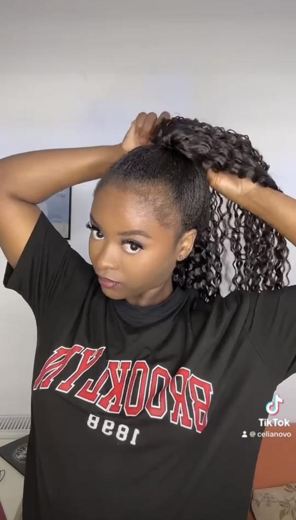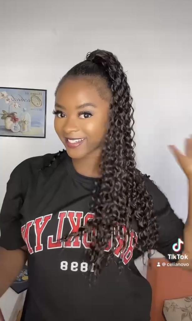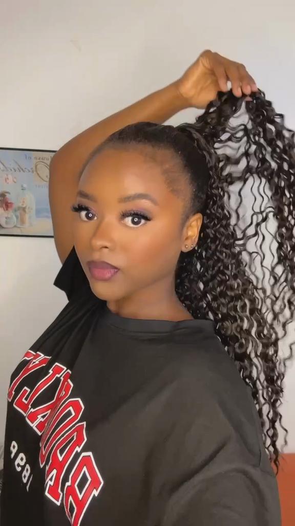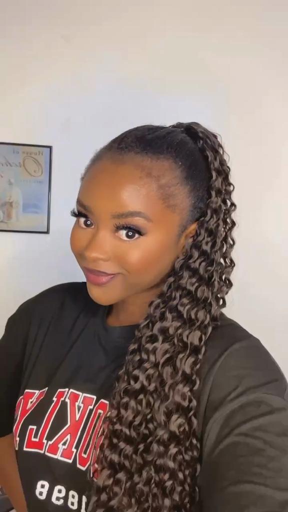 MERISIHAIR Synthetic Drawstring Ponytail Long Curly Ponytail Clip In Hair Extension Women Natural Black Hairpiece