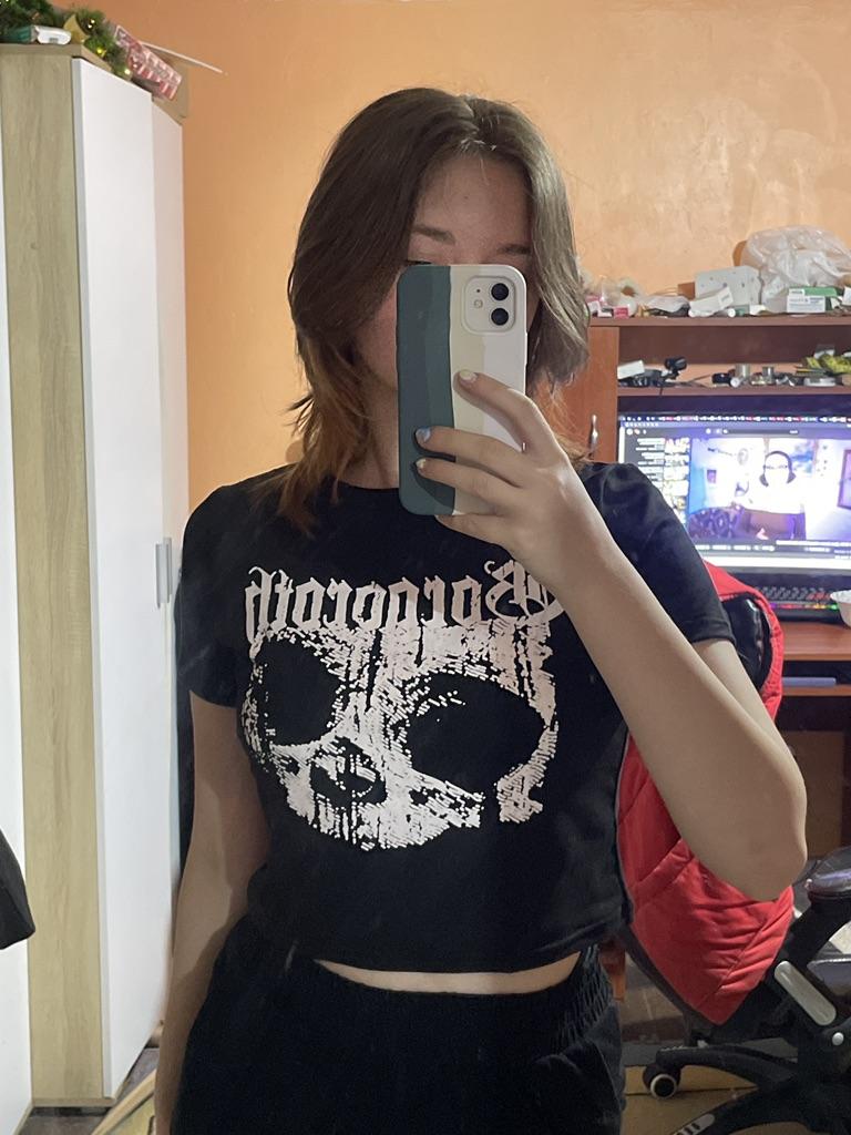 Vintage short sleeve T-shirt 90s Gothic Harajuku print pattern croptop skeleton Skull punk streetwear aesthetic female mujer top — buy online with free worldwide shipping!