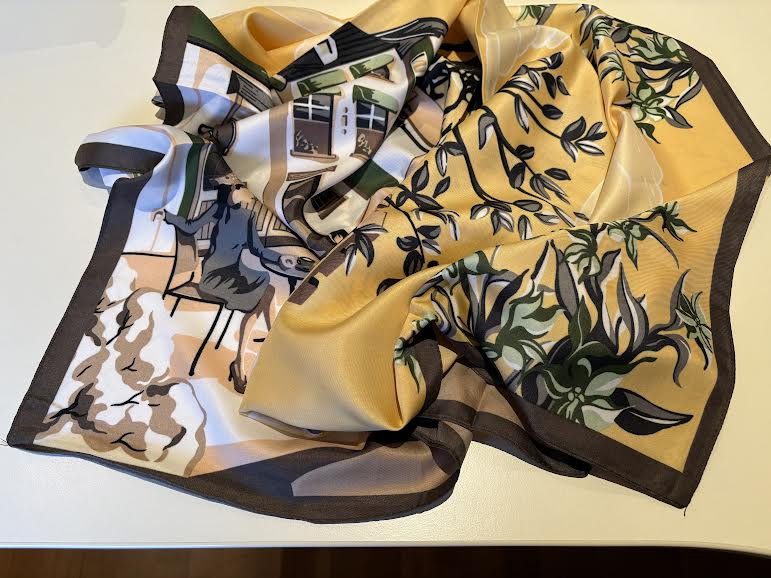 A very chic silky fashionable scarf. Very happy with it and looking forward to wearing it soon.