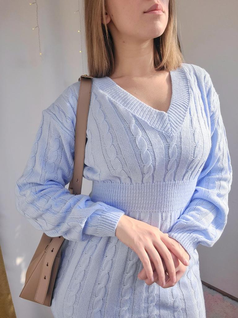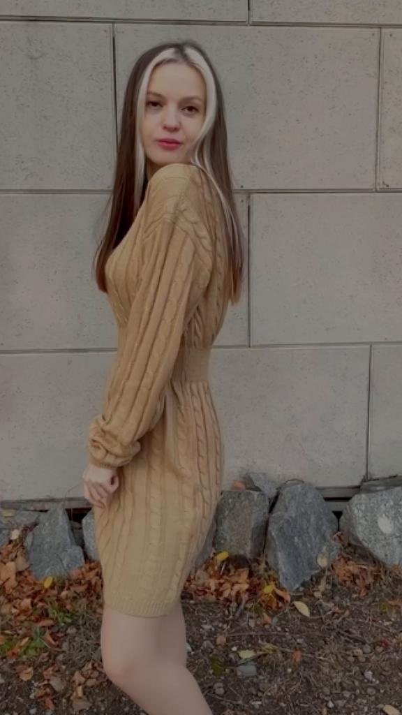Women Autumn Winter High Waist Twist Wrap V Neck Long Sleeve Solid Color Hip Sweater Dress S-L — buy online with free worldwide shipping!