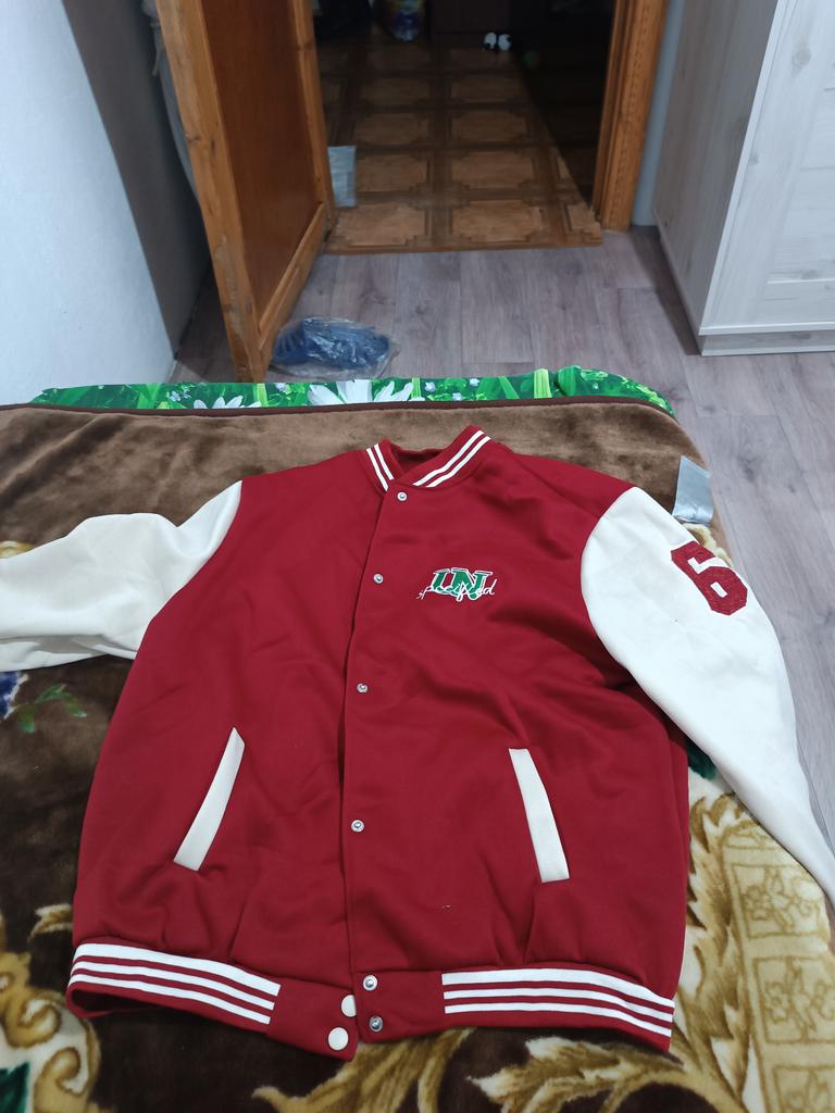 Warm bomber jacket. The sleeves are not pure white, but cream-milk colored; the buttons are ivory-colored. In size, it's just what I wanted. Oversized, but not too much. For 1.70m, size M (my) L (bomber) will be just right
