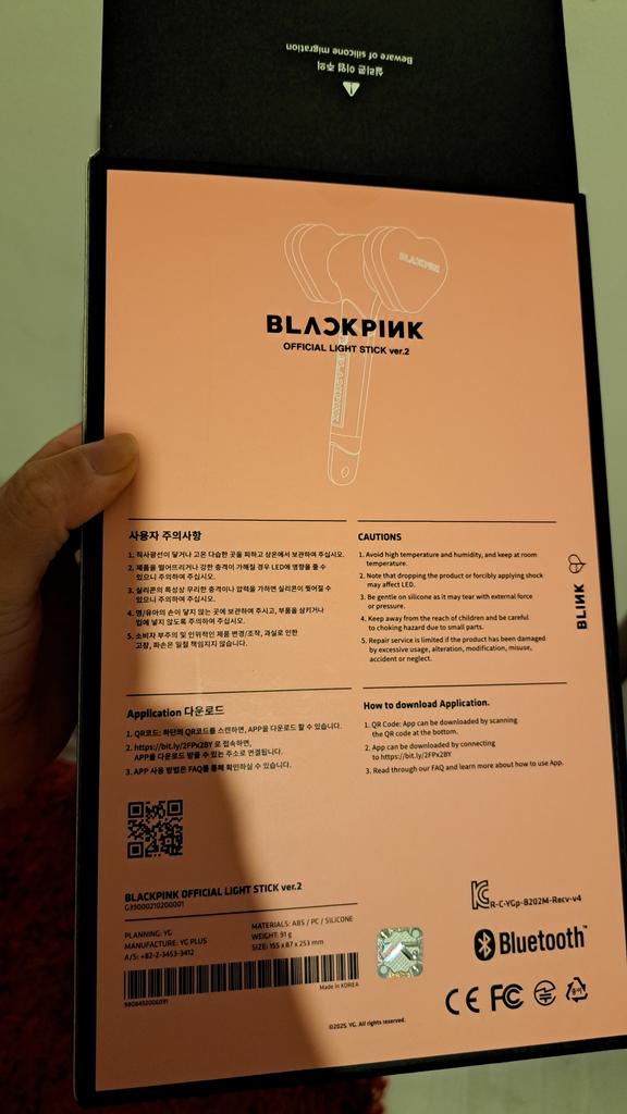 The lightstick is indeed an official one. It connected without any problem to the Blackpink app and works perfectly. The chip is too happy. Allow time for the order as it took 3 weeks to arrive. Well packaged. No gift with the order or photo card.
