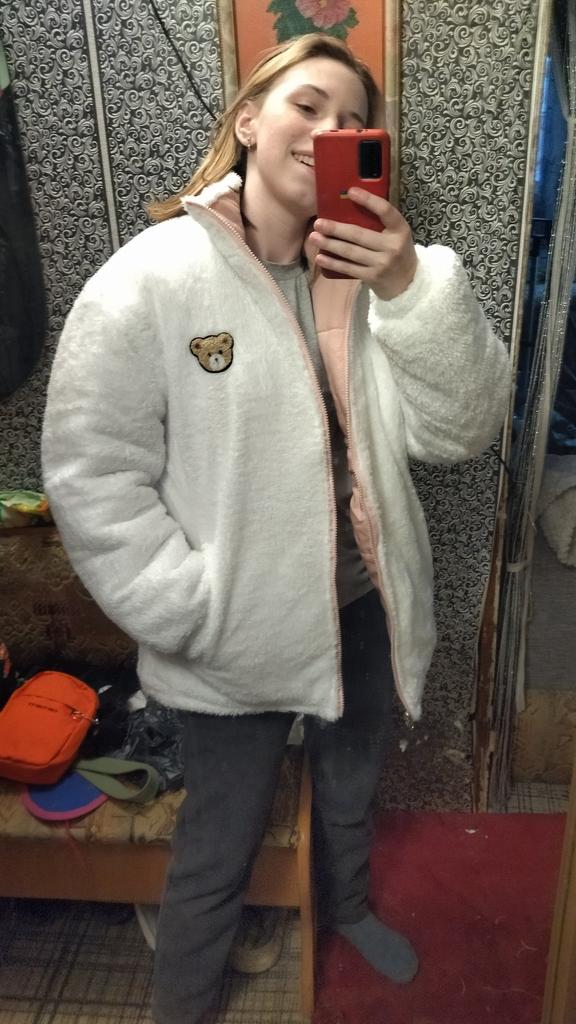 It fits a thin body, oversized (I took measurements and assembled it with what was written), the pink one is not very good, but the white side is great. It is normal for winter, it will go to -1 if you wear a sweater under the bottom