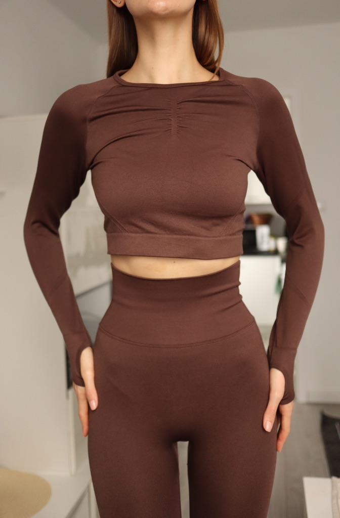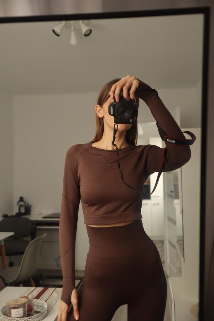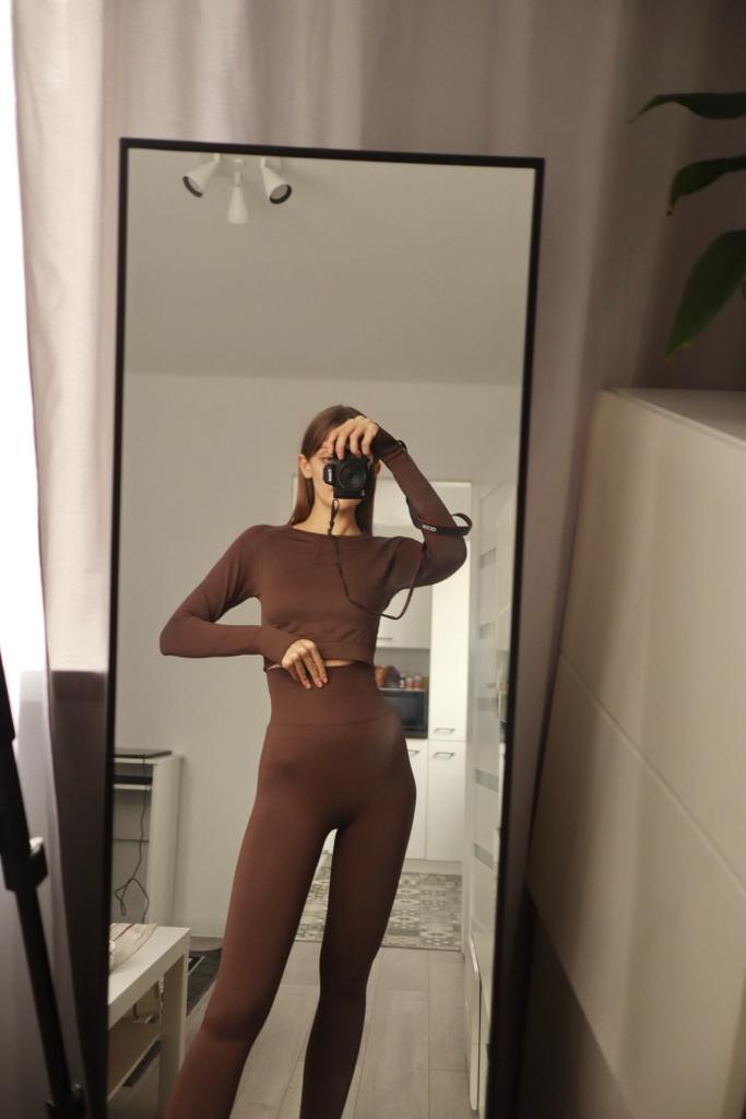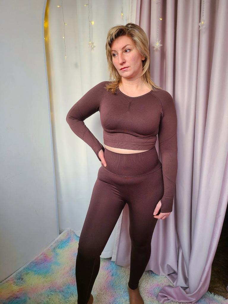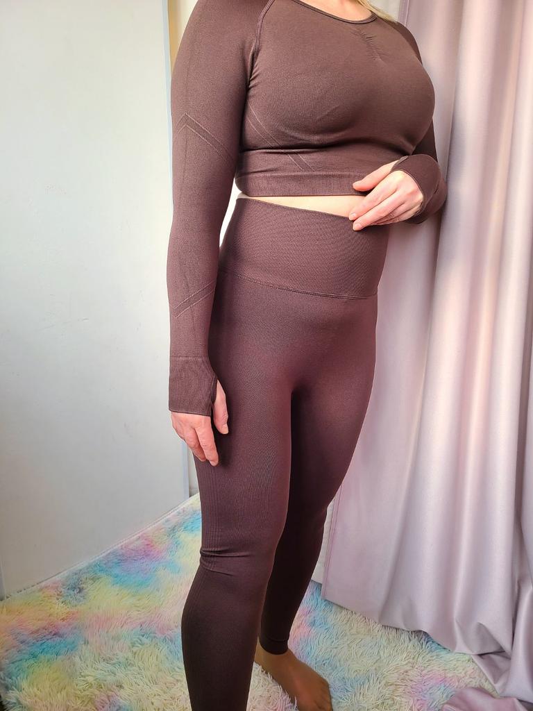 A wonderful seamless sports kit 🤎 Hi dawn shop The seller has many colors to choose from, I chose coffee 🤎 Size S My settings Height 175 Chest girth 78 Waist 57 Hips 89 Everything fit perfectly, a high quality kit. The fabric keeps its shape perfectly even after multiple washes 👌🏻 I recommend 🤎 Discount promo code 18VRVT5PJB