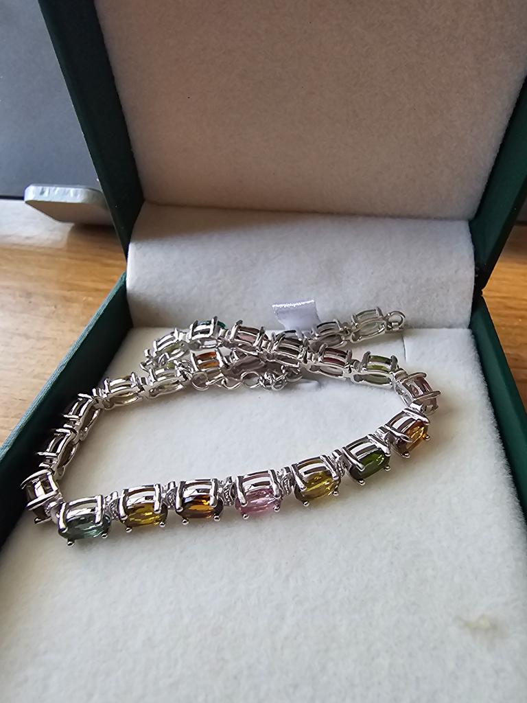 Real Colorful Gemstone Bracelet Natural Brazil tourmaline Oval 4*6mm fine jewelry 925 sterling silver for women gift — buy online with free worldwide shipping!