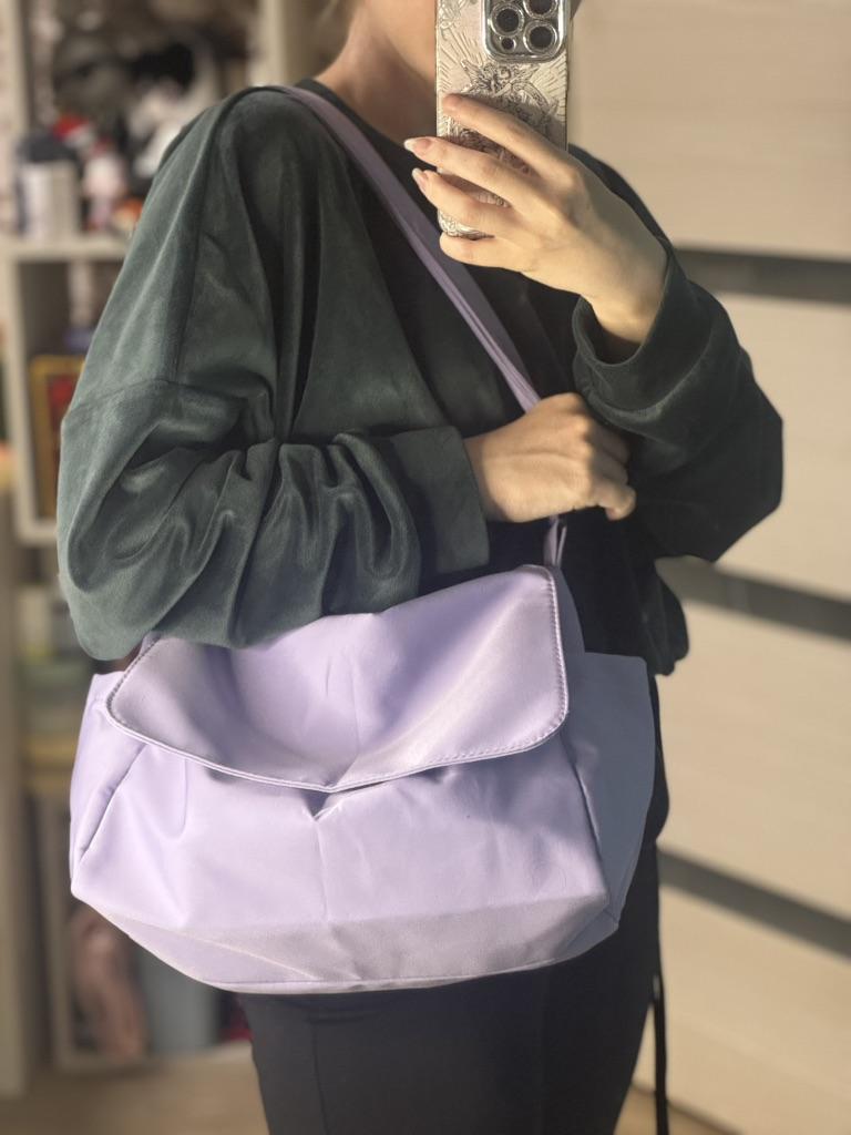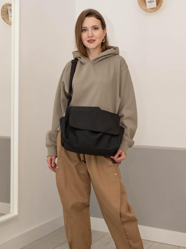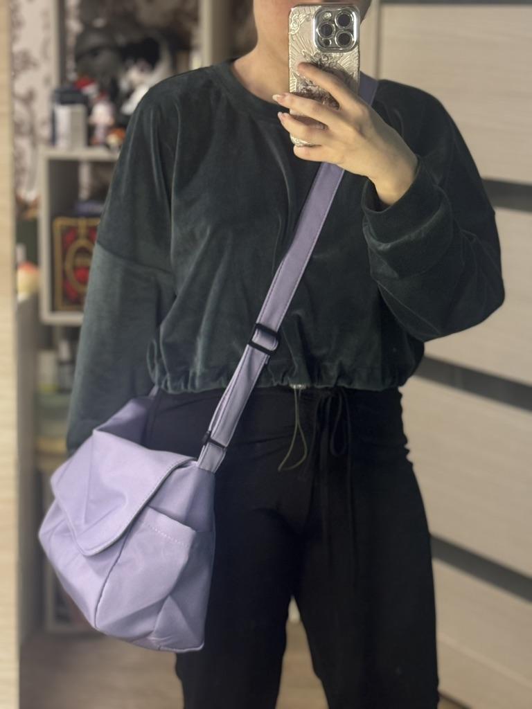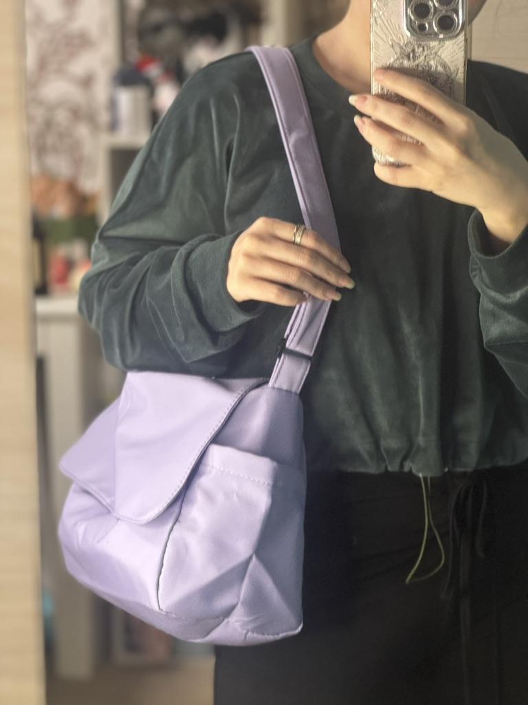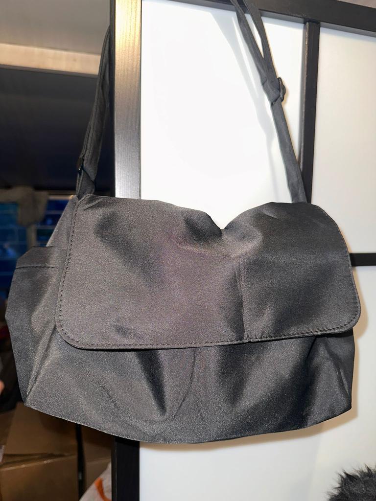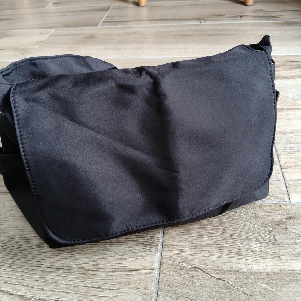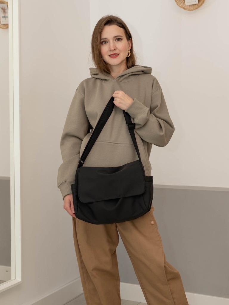 CROSSBODY BAG medium-sized shoulder bag with non-removable but adjustable shoulder strap. The bag has no internal pockets. On the outside, on both sides 2 open pockets. The bag is very spacious, has a soft structure and a zip closure. Side flap Available in various colors . I chose the color black Material: fabric of good thickness water-repellent. The bag is lined and washable . The seams are neat, no bad smells. Arrived in Italy in 20 days with tracked shipping. Packaging: cellophane wrap. An extremely low price !!! Recommended purchase 👌