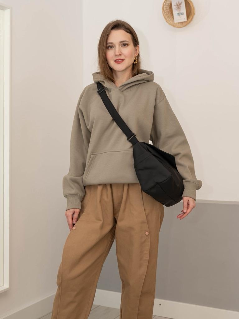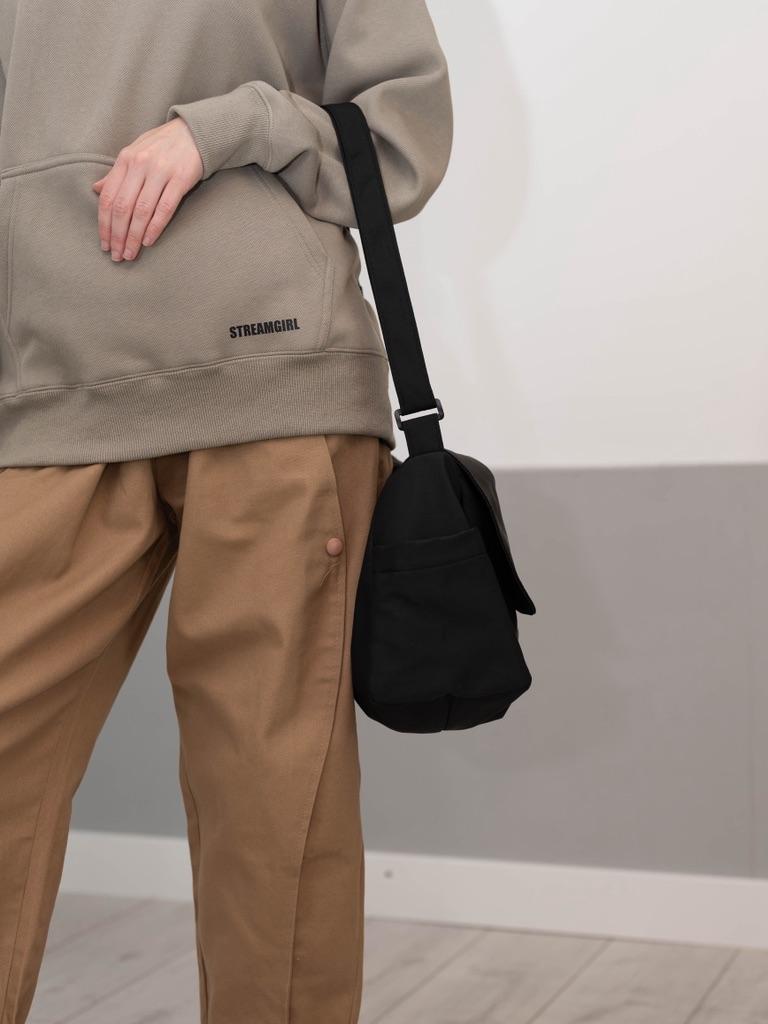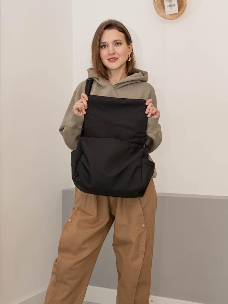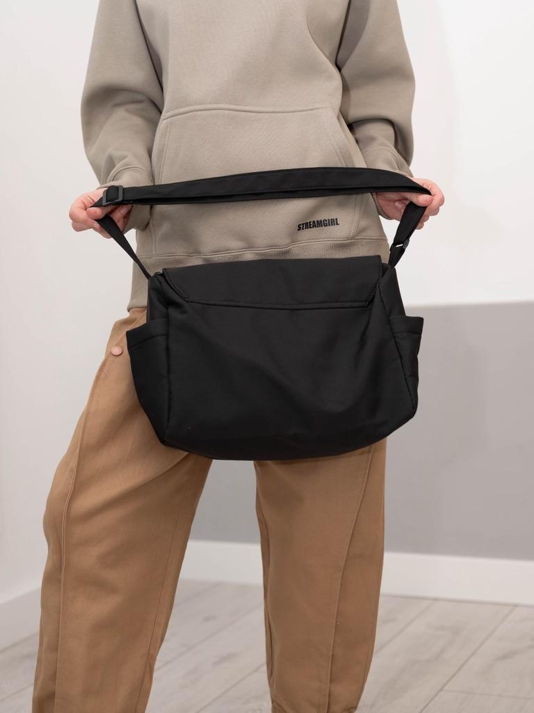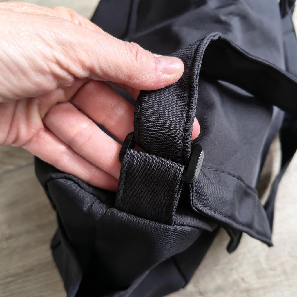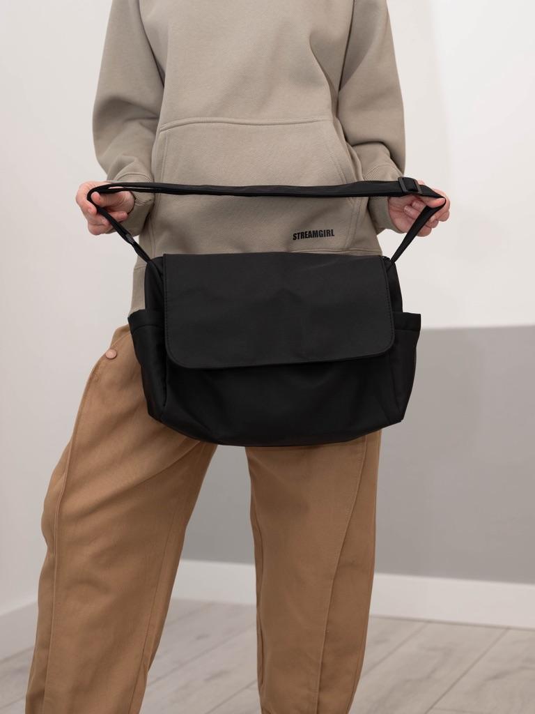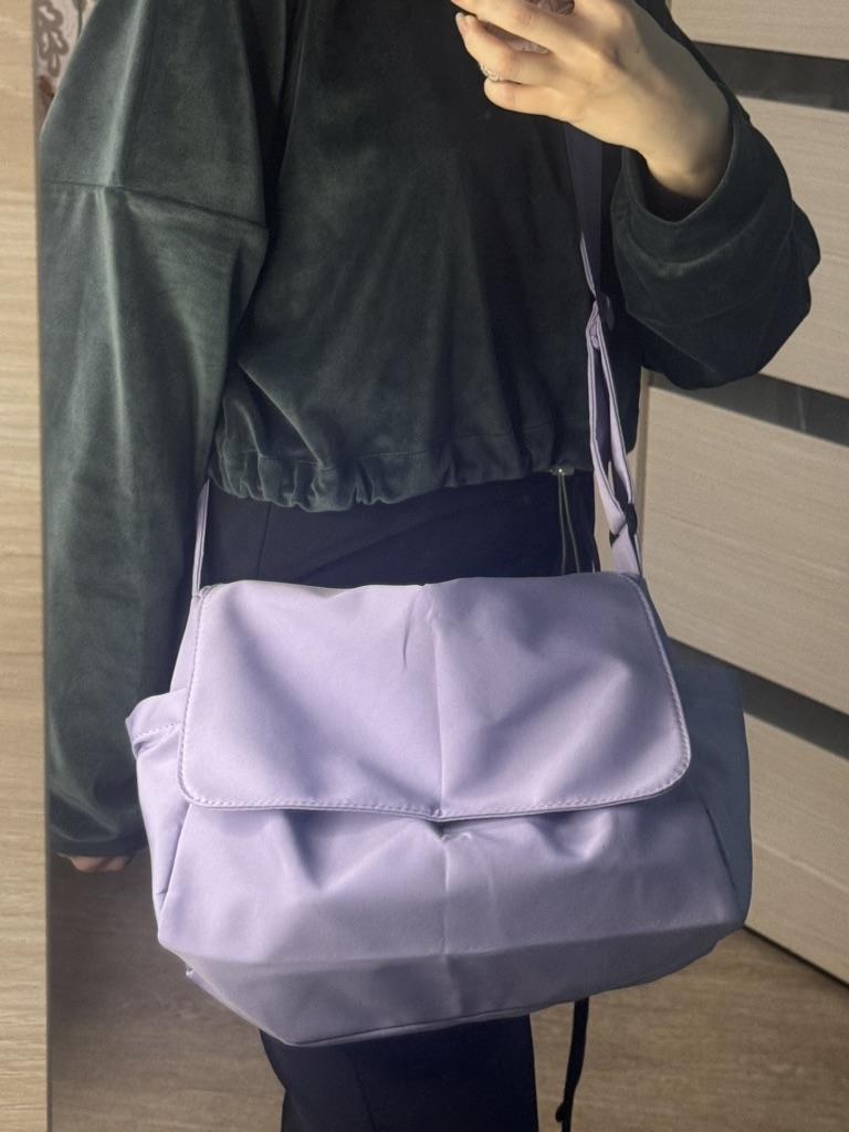 CROSSBODY BAG medium-sized shoulder bag with non-removable but adjustable shoulder strap. The bag has no internal pockets. On the outside, on both sides 2 open pockets. The bag is very spacious, has a soft structure and a zip closure. Side flap Available in various colors . I chose the color black Material: fabric of good thickness water-repellent. The bag is lined and washable . The seams are neat, no bad smells. Arrived in Italy in 20 days with tracked shipping. Packaging: cellophane wrap. An extremely low price !!! Recommended purchase 👌