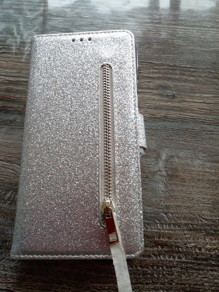 Exquisite Shinning Sequin Zipper Wallet Case for iPhone Samsung Xiaomi Huawei Google Cute Love Heart Photo Frame Flip Covers with Hand-strap — buy online with free worldwide shipping!