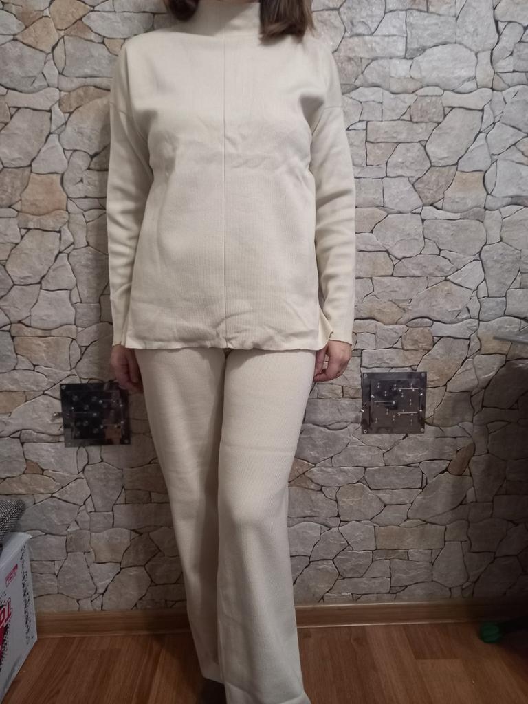 Fashion Collar Loose Long-sleeved Irregular Knit Tops High Waist Thin Straight Pants Two-piece Set — buy online with free worldwide shipping!