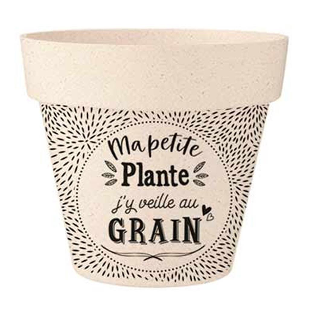Les Trésors De Lily [R2214] - 'Messages' bamboo flowerpot beige black (My little plant, I watch over it at the Grain) - 17x15cm — buy online with free worldwide shipping!