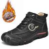 Men's Hiking Boots High Top Leather Plush Outdoor Cotton Shoes Large Size 39-46