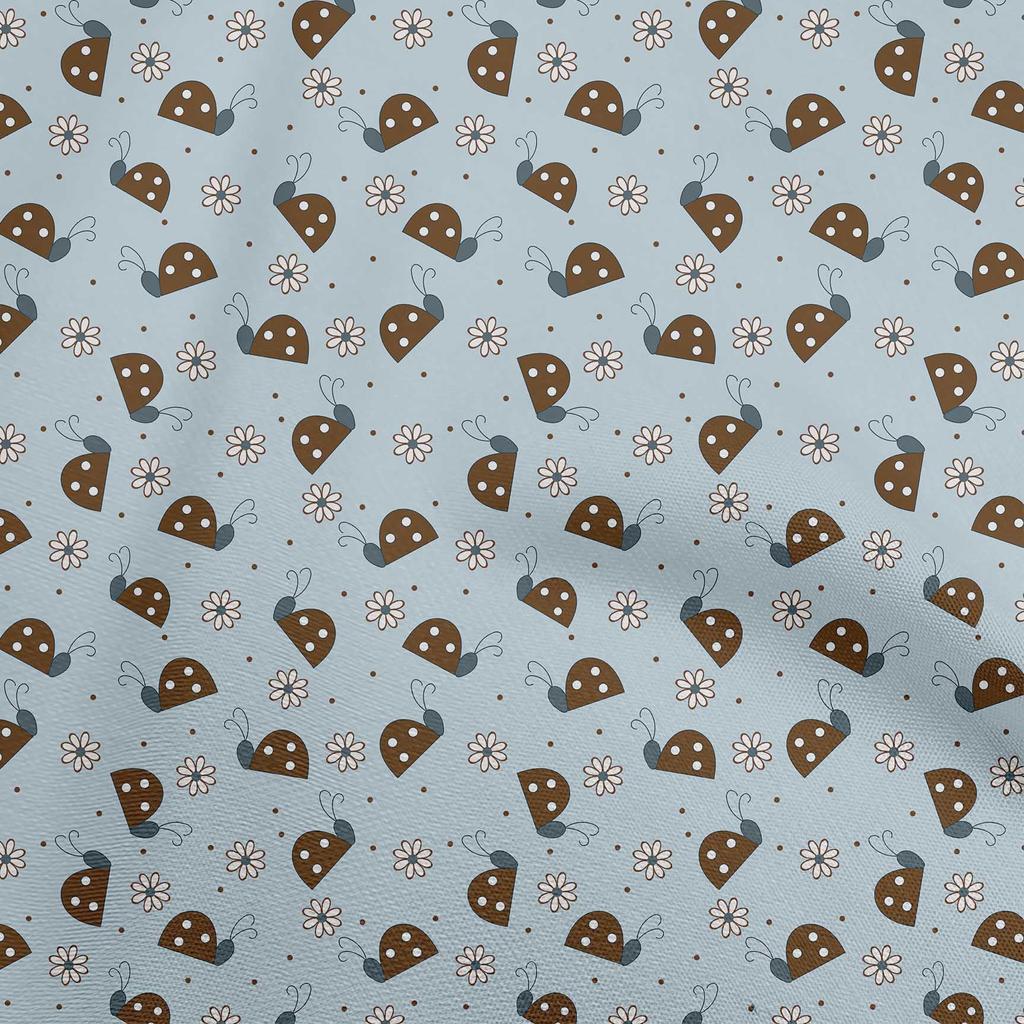 oneOone Cotton Poplin Light Blue Fabric Bird Ladybird Quilting Supplies Print Sewing Fabric By The Yard 42 Inch