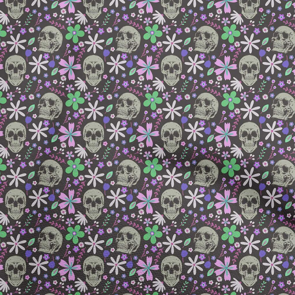 oneOone Cotton Flex Gray Fabric Skull Sewing Material Print Fabric By The Yard 40 Inch