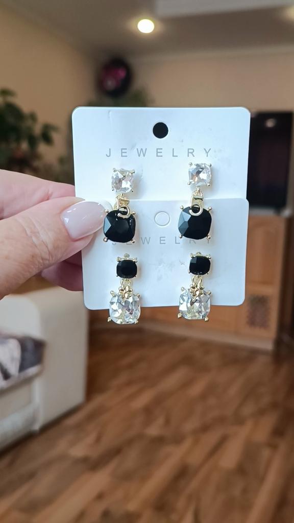 Exquisite and Luxurious Asymmetric Black and White Crystal Earrings, Suitable for Women's Luxury Accessories — buy online with free worldwide shipping!