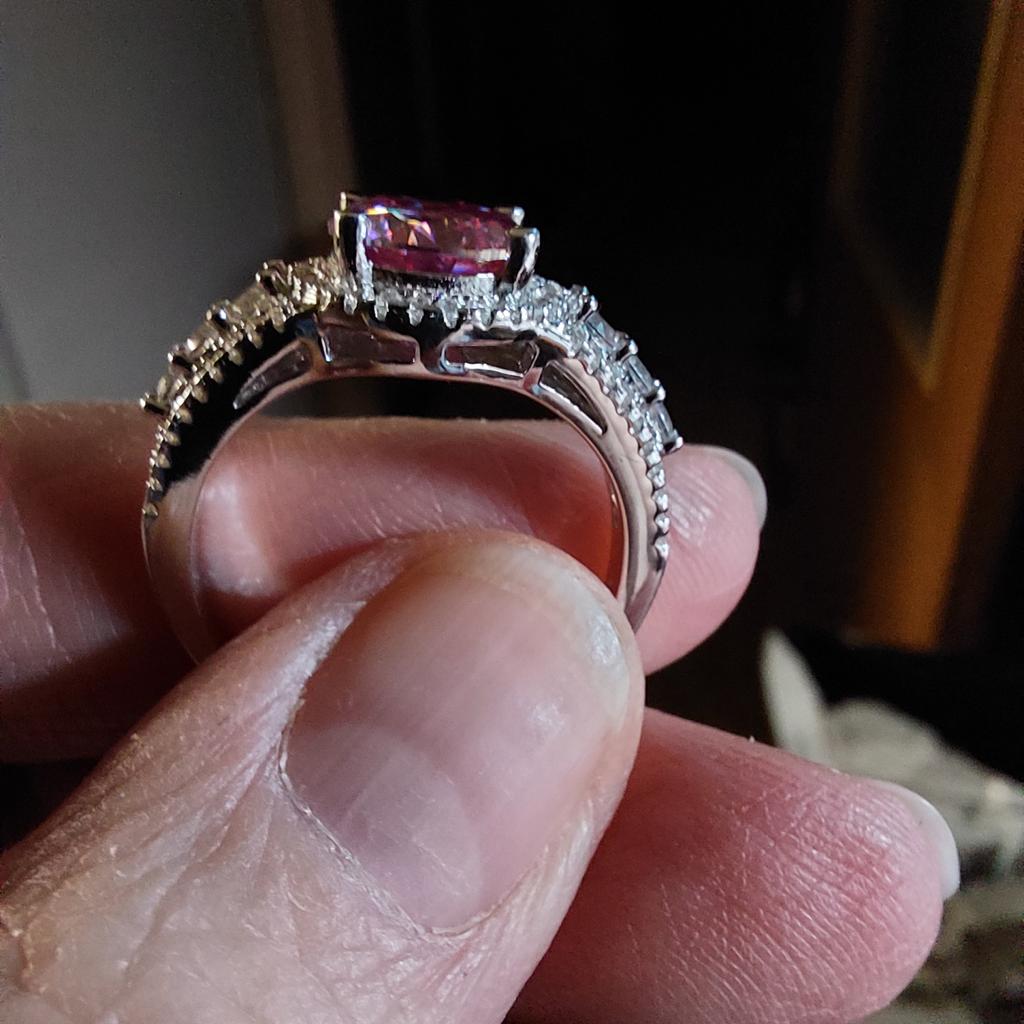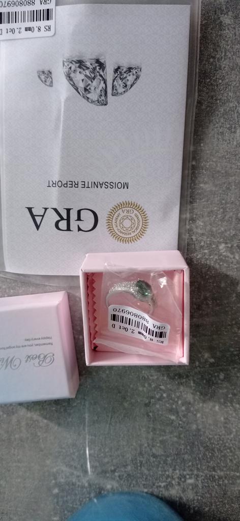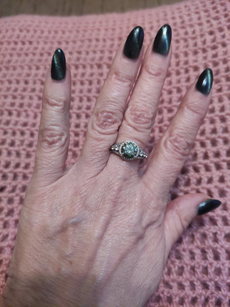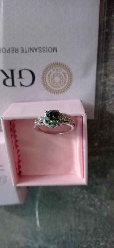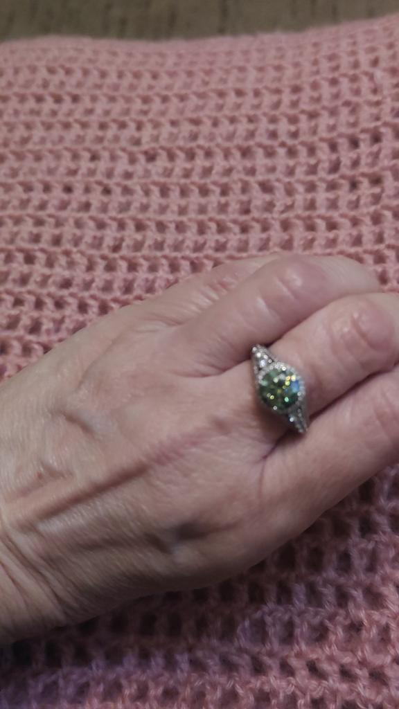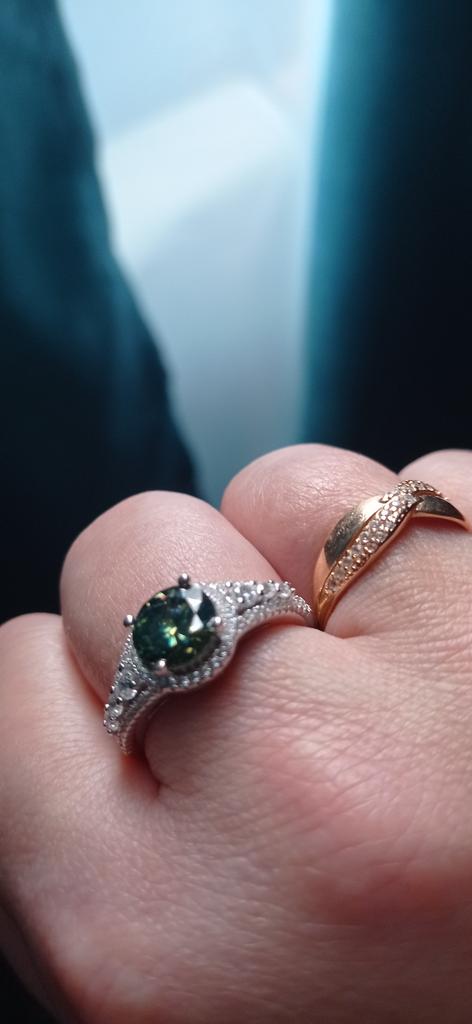Very beautiful ring. The stones shimmer like diamonds. The work of the jewelers is excellent. Very interesting - is it really moissanite? When I do the diamond test - I will make a post. Today is February 3. I finally did the test. The green stone inside is moissanite!! Thank you to the jewelers and the store for such a beautiful piece of jewelry❤️