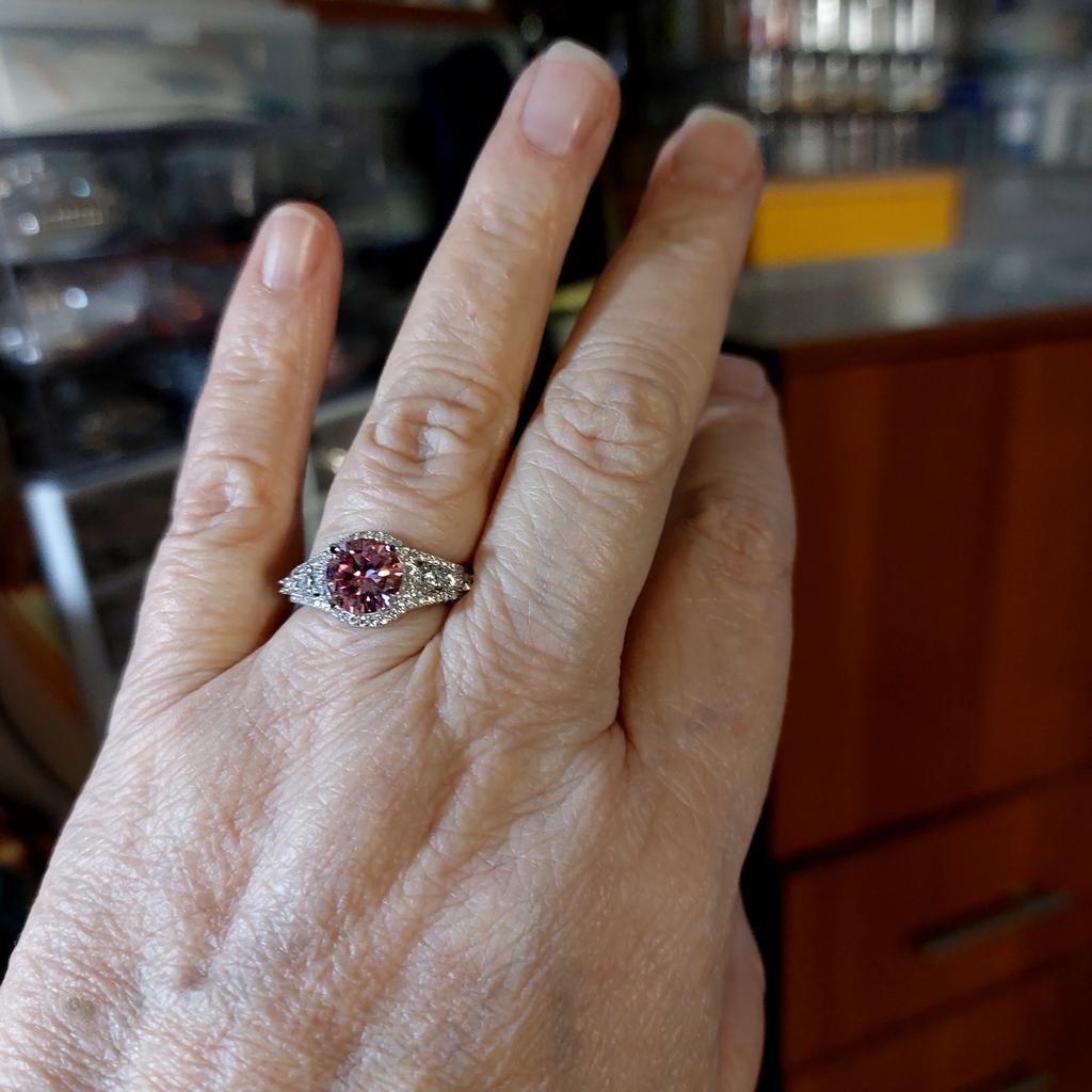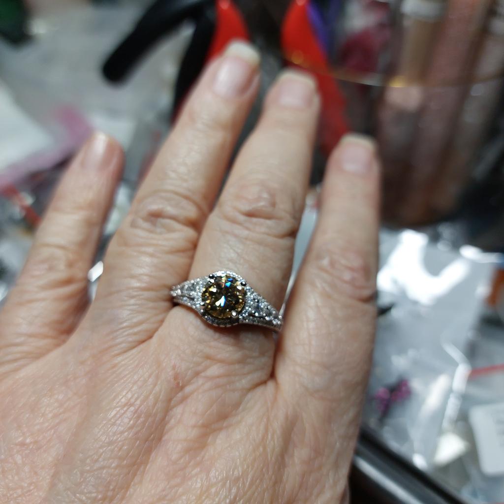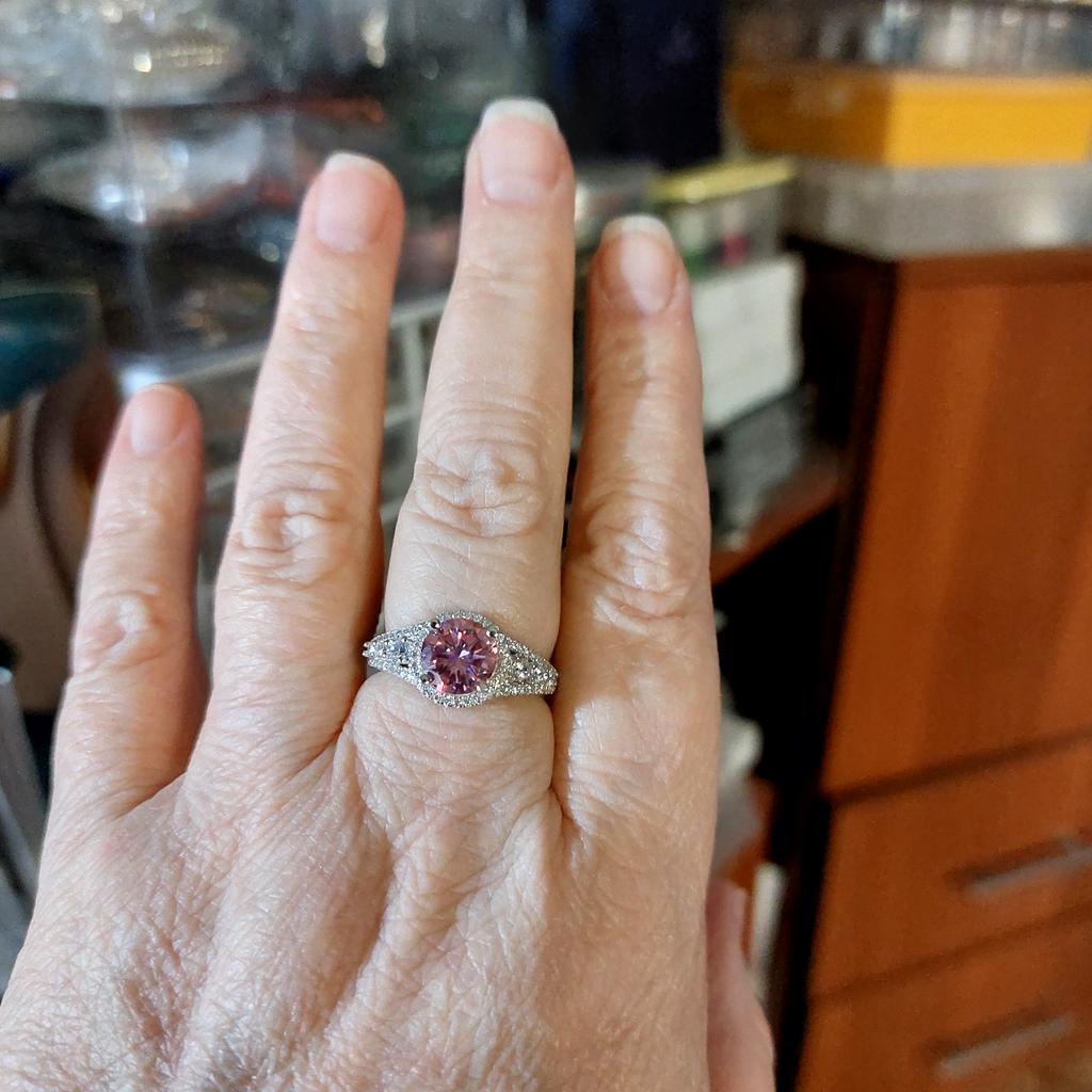 Very beautiful ring. The stones shimmer like diamonds. The work of the jewelers is excellent. Very interesting - is it really moissanite? When I do the diamond test - I will make a post. Today is February 3. I finally did the test. The green stone inside is moissanite!! Thank you to the jewelers and the store for such a beautiful piece of jewelry❤️