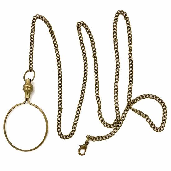 This brass Magnifier Pocket Chain is a useful tool for reading fine print or inspecting jewellery.
