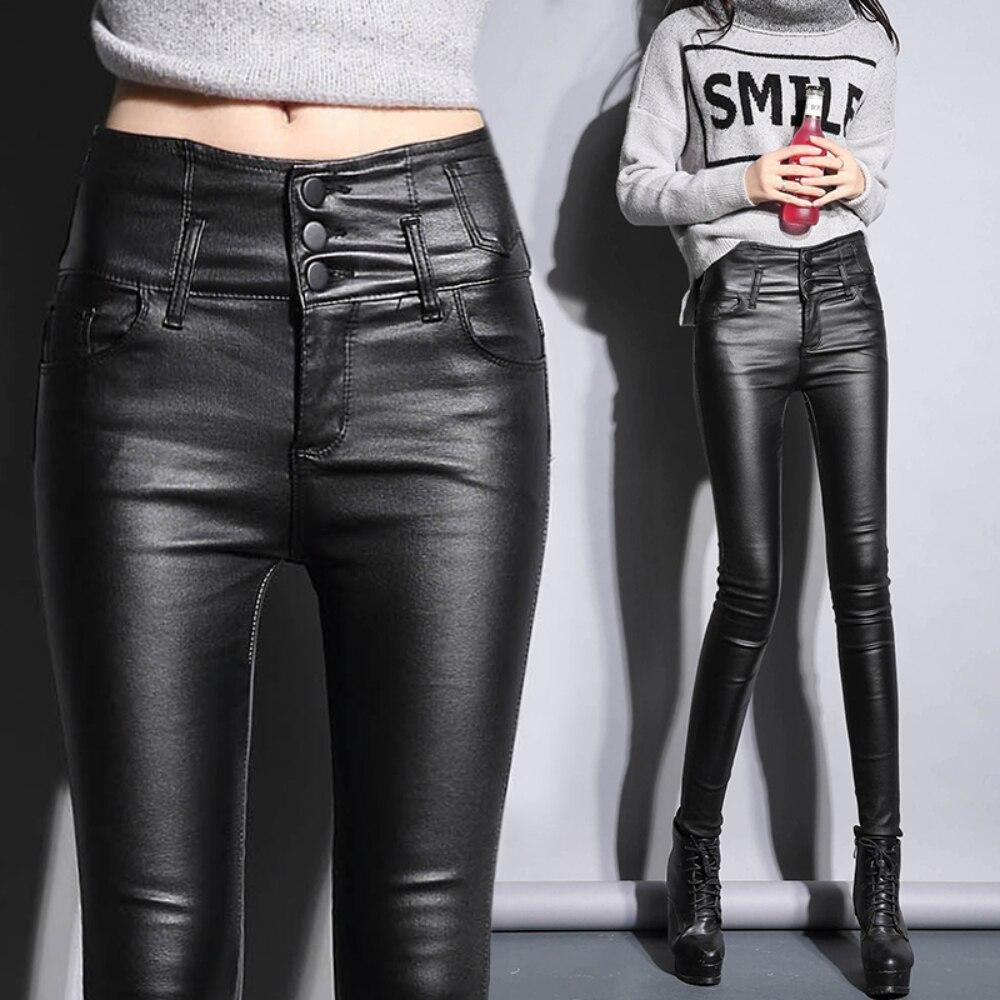 2022 Autumn Winter New High Waist Stretch Leather Leggings Thick Female Fitness PU Leather Pants Sexy Push Up Slim Trousers