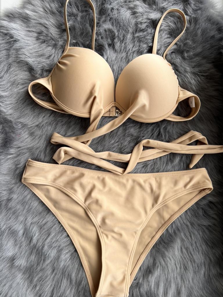 Swimsuit Women's Hard Clad Steel Split Bikini Set Retro Solid Color Hollow Out Swimwear