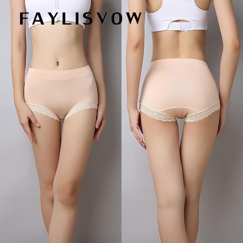 Mid-High Waist Cotton Crotch Lace Breathable Tummy Large Size Women's Triangle Pants — buy online with free worldwide shipping!