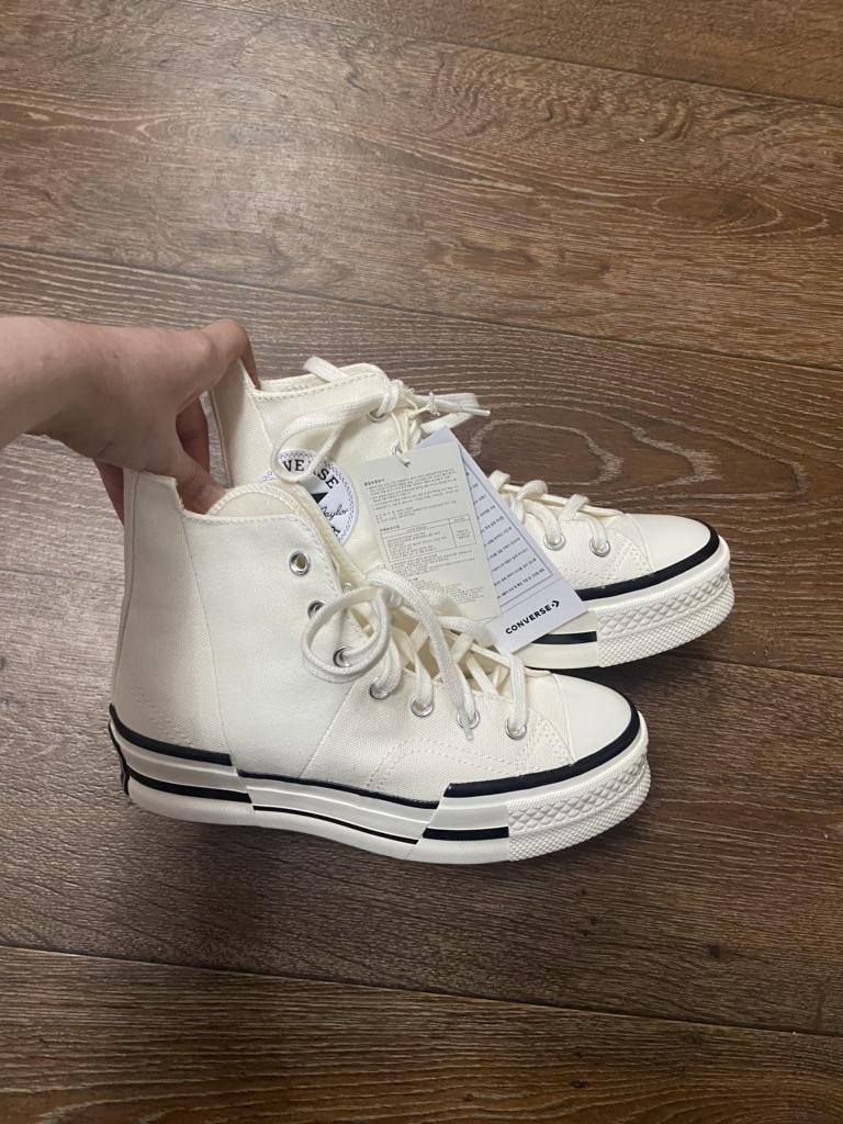 The Converse Chuck 70 Plus Egret (A00915C) is available in beige color, featuring an upper made of leather. The outsole is made of rubber, providing durability and comfort for the wearer. The lining is 100% cotton, ensuring excellent wearability.