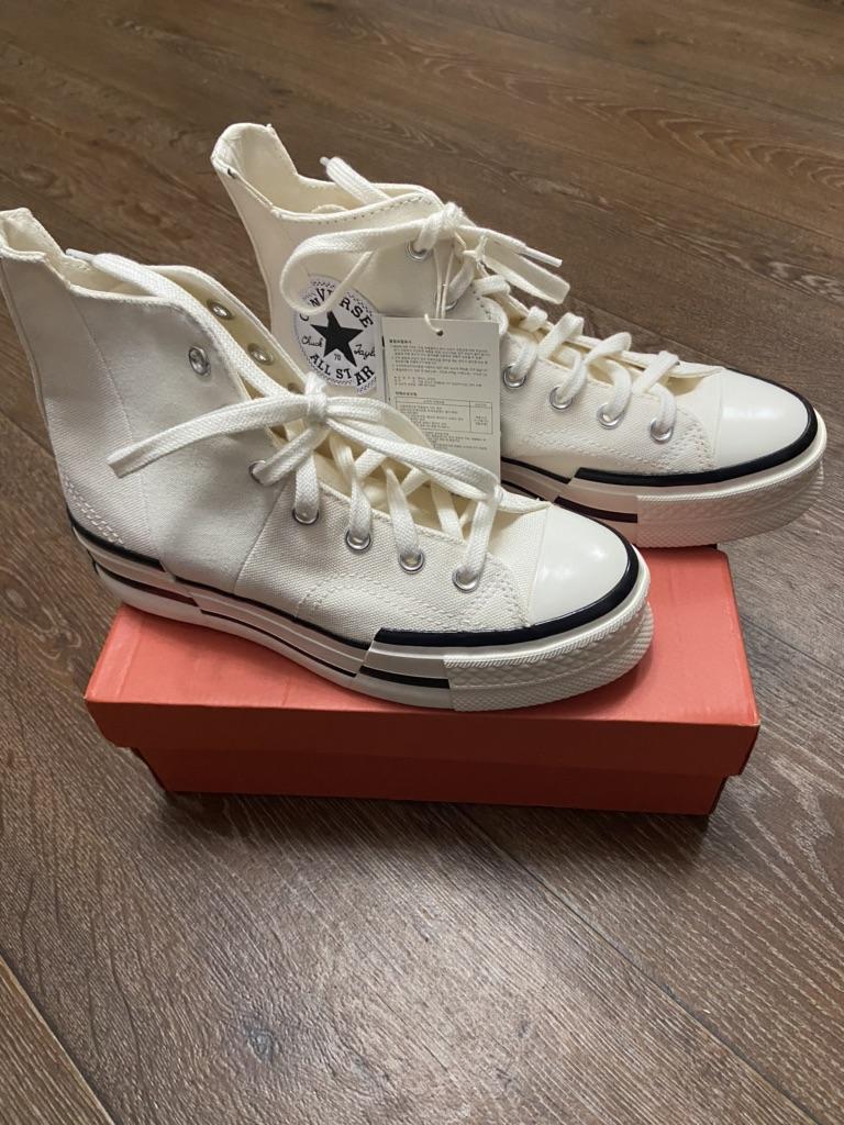The Chuck 70 Plus features a timeless design with asymmetrical lines and premium materials, offering a stylish appearance. It combines functionality with UV resistance, providing comfort for the feet.