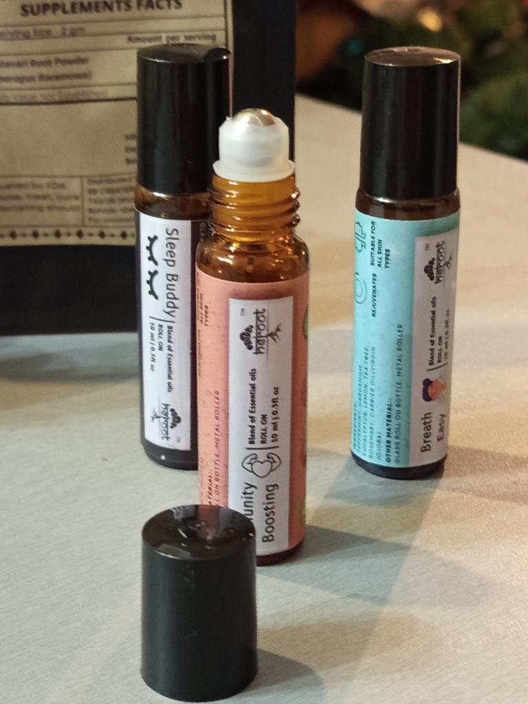 I highly recommend the essential oil blend.👍 Heroot Breath Easy Roll On. Most people are aware of the suffering of a cold and will do anything to find a cure. If you are one of those who does not prefer over-the-counter medications, then you should definitely try this blend. Essential oils are known for their antiviral and antibacterial properties, so they help fight seasonal allergies, colds and nasal congestion. "You just have to take a deep breath, relax and let the game come to you" Ingredients: Peppermint, Cardamom, Tea Tree, Eucalyptus, Lemon, Rosemary, Jojoba (Carrier Oil) Benefits: Clear congestion, uplift your mood Benefit: Soothe muscles Country of origin: India Weight: 10 ml Key benefits: Convenient and easy to use Allows for even application On-the-go packaging Focuses on specific problem areas Delivers the required amount of product in a few strokes and reduces the risk of loss How to use - Apply generously to the back and front of the neck.
