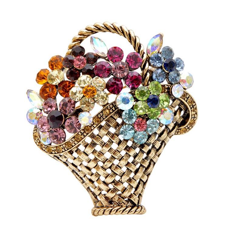 Creative Flower Basket Zircon Brooch Vintage Colorful Pins Women Fashion Jewelry Clothes Coat Decoration Scarf Buckle — buy online with free worldwide shipping!