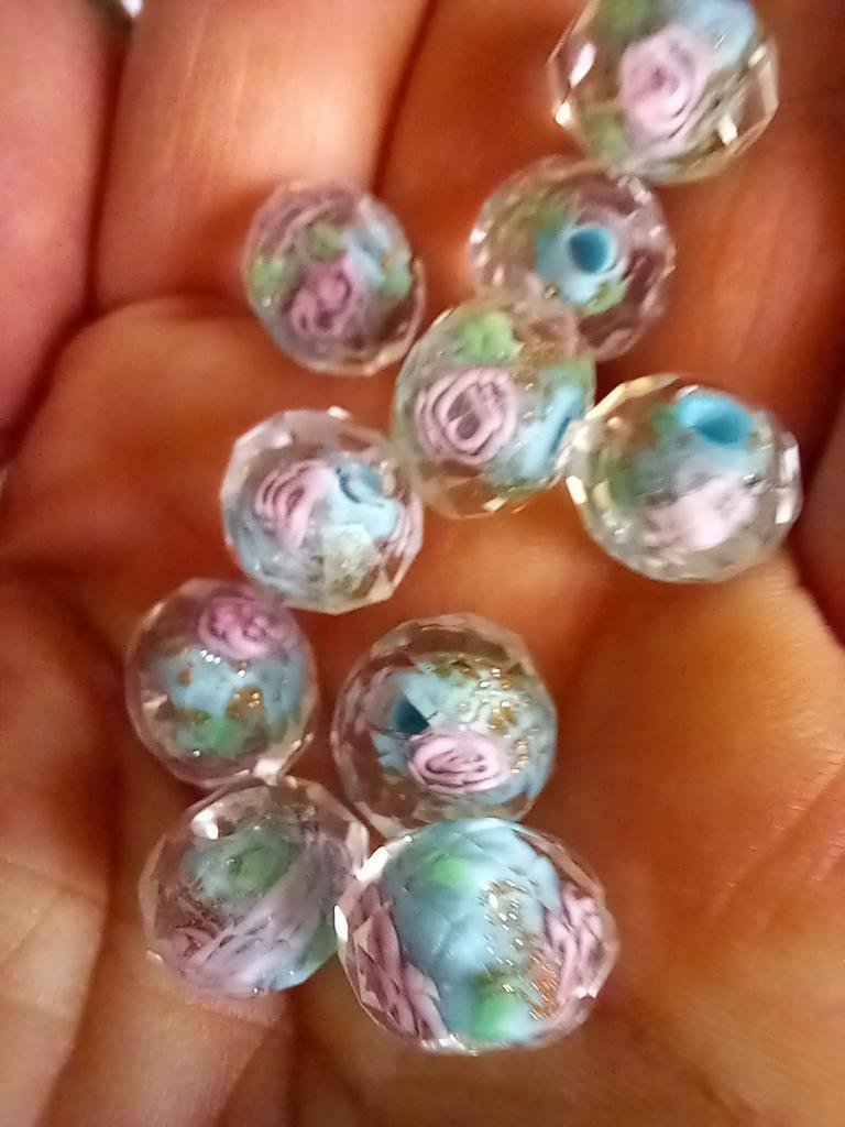 Creative Fashion Material Glass Abacus Beads Flower Exquisite DIY Bracelet Necklace Material Earrings Gold Sand Round Loose Bead Pendants