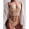 Europe Sexy Women Underwear Lace Mesh Push Up Bra Set Black Fish Bone Body Shaper Tops Brassiere Ladies Comfortable Lingerie