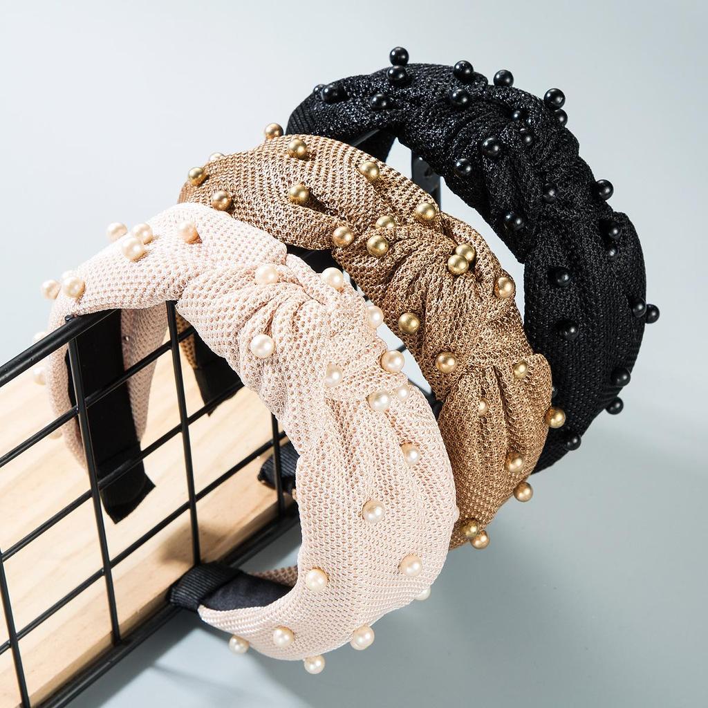 Women Hair Band Pearl Velvet Bow Wide Edge Headband Mesh Headwear