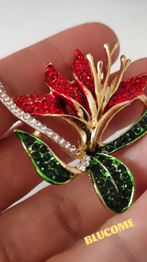 Blucome Elegant Narcissus Rhinestone Brooch for Women Unisex Zirconia Leaf Party Office Brooch Pin Gifts — buy online with free worldwide shipping!