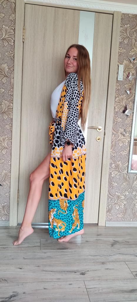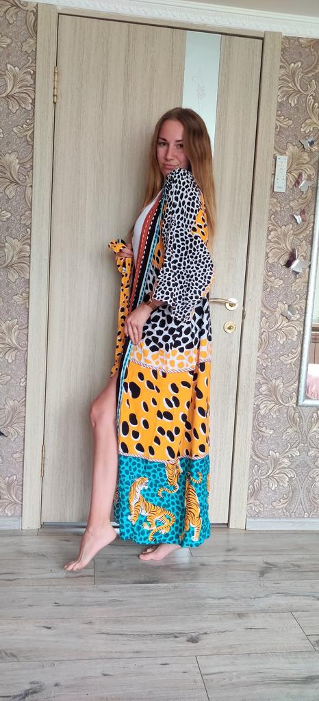 EDOLYNSA Boho Printed Kimono Dress Tunic Women Summer Clothes Plus Size Long Sleeve Bikini Wrap Dress Beach Wear Swim Suit Cover Up Q1414 — buy online with free worldwide shipping!