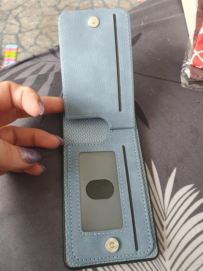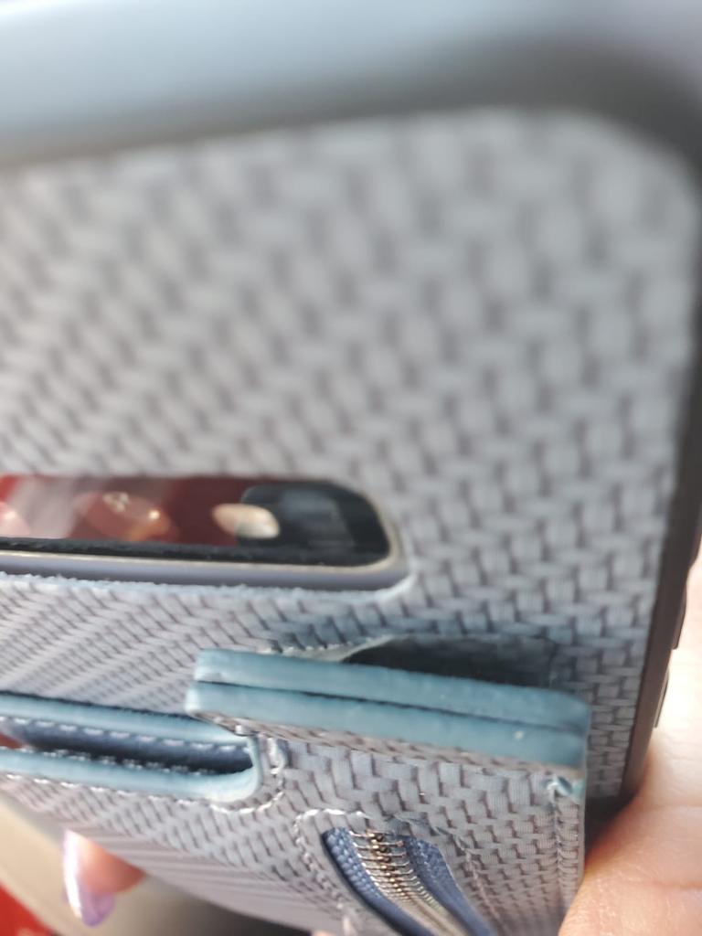 Beautiful case,not very spacious,also it came apart from the top after putting my bank card and drivers license in it and doesn't want to close very well with the cards in it