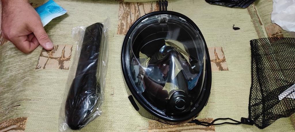 The snorkeling mask is very good in size, perfect. All the details are in the set. And the mesh bag I recommend!!! Only noticed one nuance, they didn't put the screw in the set, there is only the nut for attaching the camera