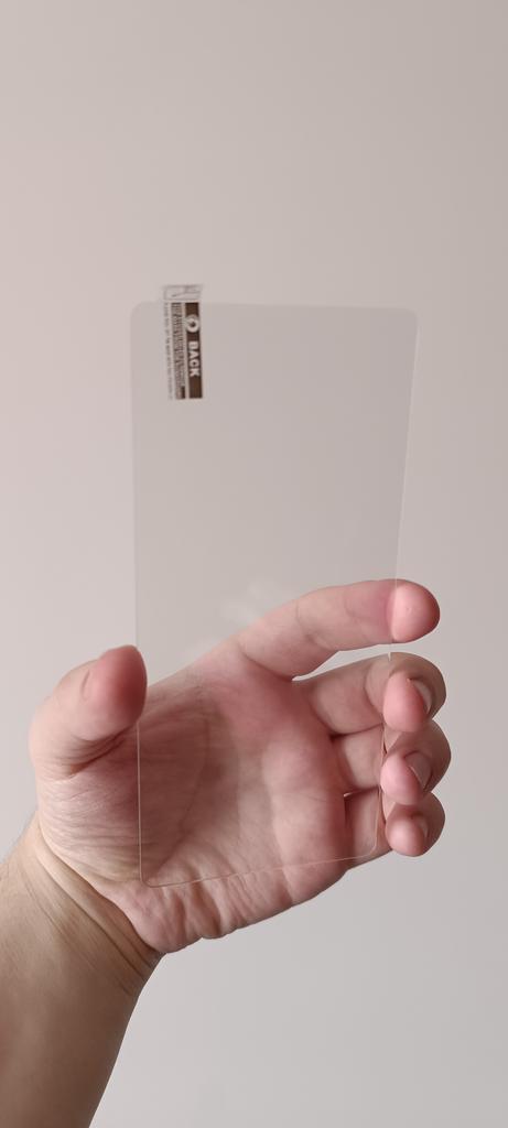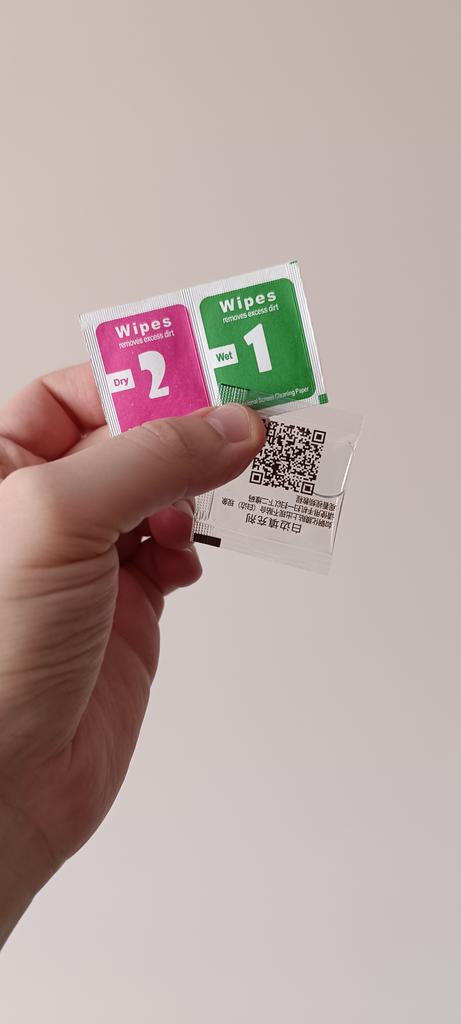 Doesn't fit the screen size, causing debris to accumulate at the bottom and interfering with the case. The kit included everything, wipes, three glasses
