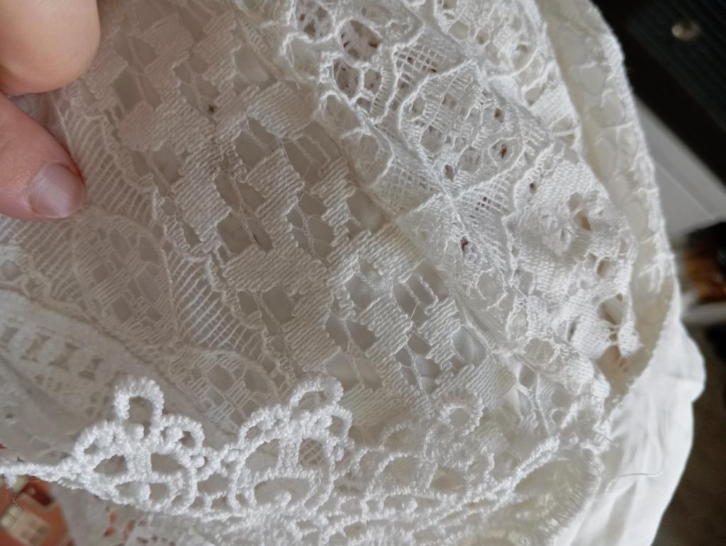 It's my size, it's very beautiful. It's a holiday. Only that it is hard to predict and it also has a stain, as if it was a little moldy. Otherwise, I really like it. The material stretches a little. In the picture it looked like it was a rough material. But he's actually very cute. I can't wash it if the embroidery doesn't break.