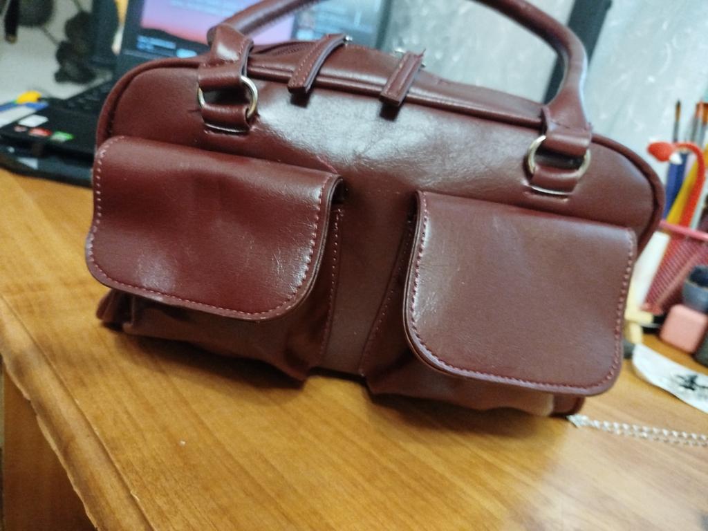 She came Reaaaaally crumpled (in the photo I stuffed it in so it would smooth out) And the threads stick out everywhere, but that's okay Doesn't stink, there is a smell but not such a disgusting one Quite roomy, there is a pocket inside The color is beautiful🌸