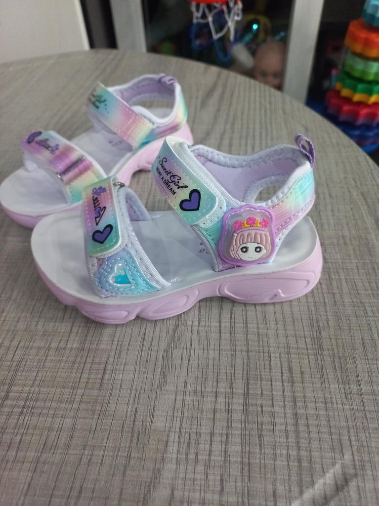 Сандали нам понравились- все как на картинке и Качество не плохое. На стопу 14,5 см по длинне подошли,но оказались узковатые и ремешок на носке не регулируется. Подойдут на худенькую ножку.