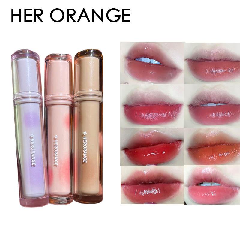 HER ORANGE~Ice Tea Fruit Sense Mirror Lip Glaze Long-lasting Not Easy To Fall Off Into A Transparent Round Tube Glass Lip Gloss Female