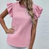 Spring Summer Ruffle Tank Top Sweet Round Neck Solid Color Women's Shirt Blouses