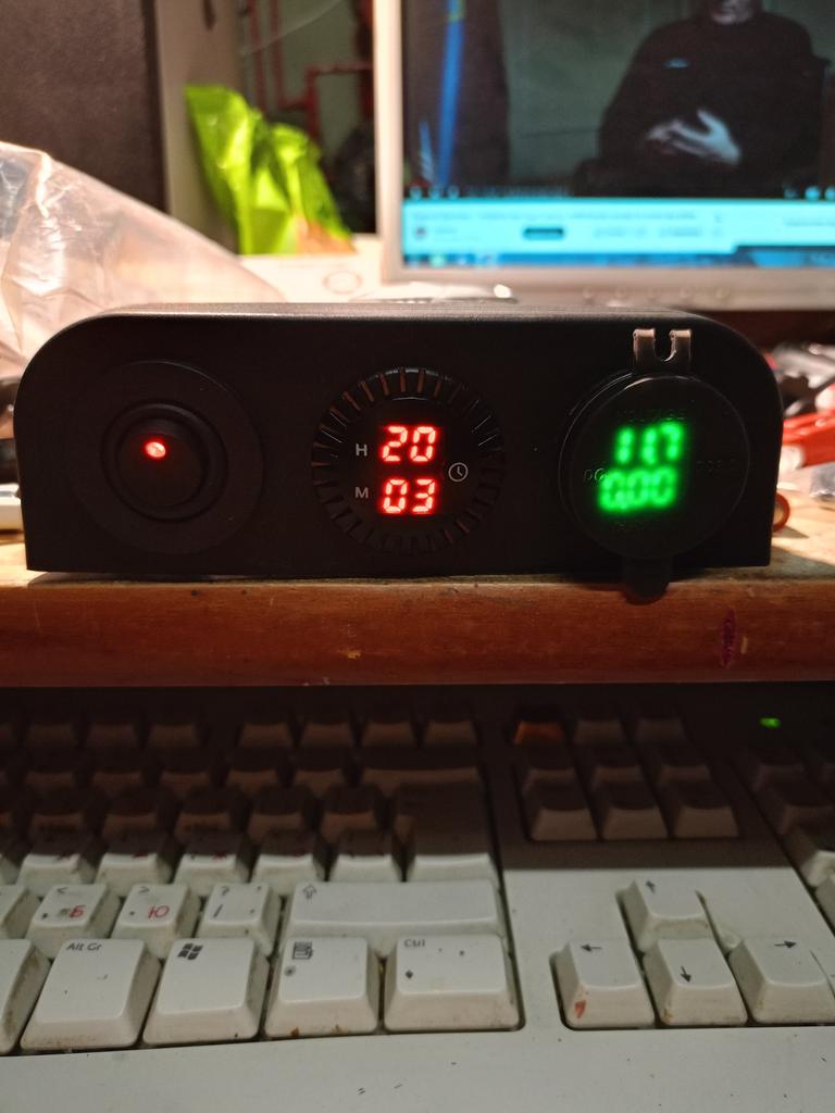 It took a long time, but it arrived))) Everything works. In order for the clock not to go astray when the device is turned off, the power supply must be connected (+ to the ups contact and - to the corresponding contact). That is, by turning it on, we only supply power to the backlight, and the device always works in standby mode. To set the clock, hold your finger on the icon until the numbers start flashing.