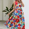 V-neck Sleeveless Beach Dress Women Casual Summer Flower Printed Dress 2023 Elegant High Waist Party Slip Dress Vestidos 25281 — buy online with free worldwide shipping!