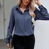 Women Tops Office Lady Solid Color V-neck Button Shirt Casual Loose Long Sleeve Shirt Spring Chiffon Blouse Clothes 25137