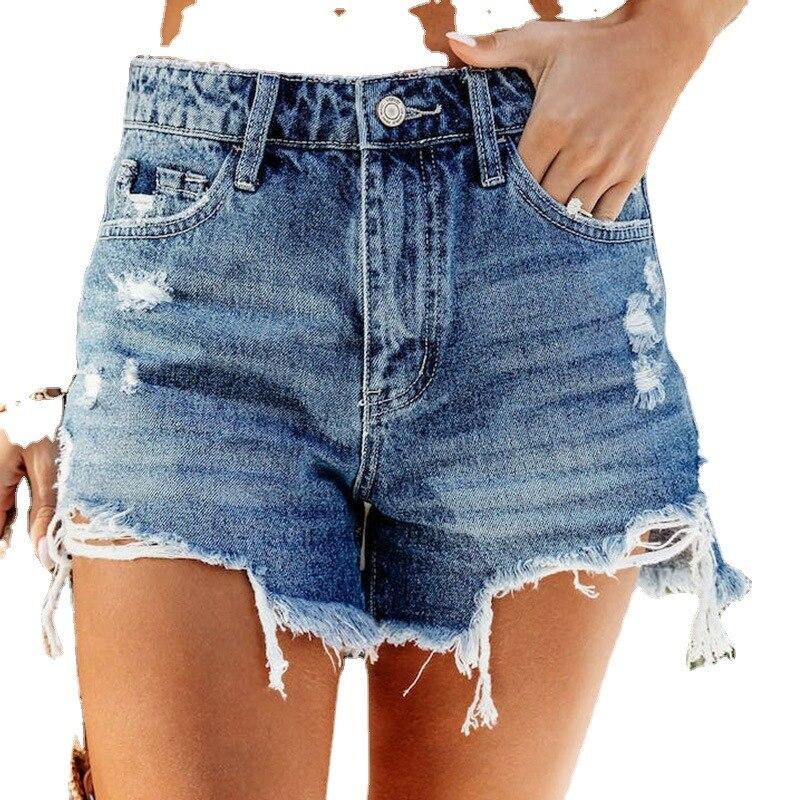 2023 Casual Hole Ripped Blue Shorts Summer High Waist Loose Short Pants Comfort Pocket Denim Shorts Pantalon Vintage Mujer 25671 — buy online with free worldwide shipping!