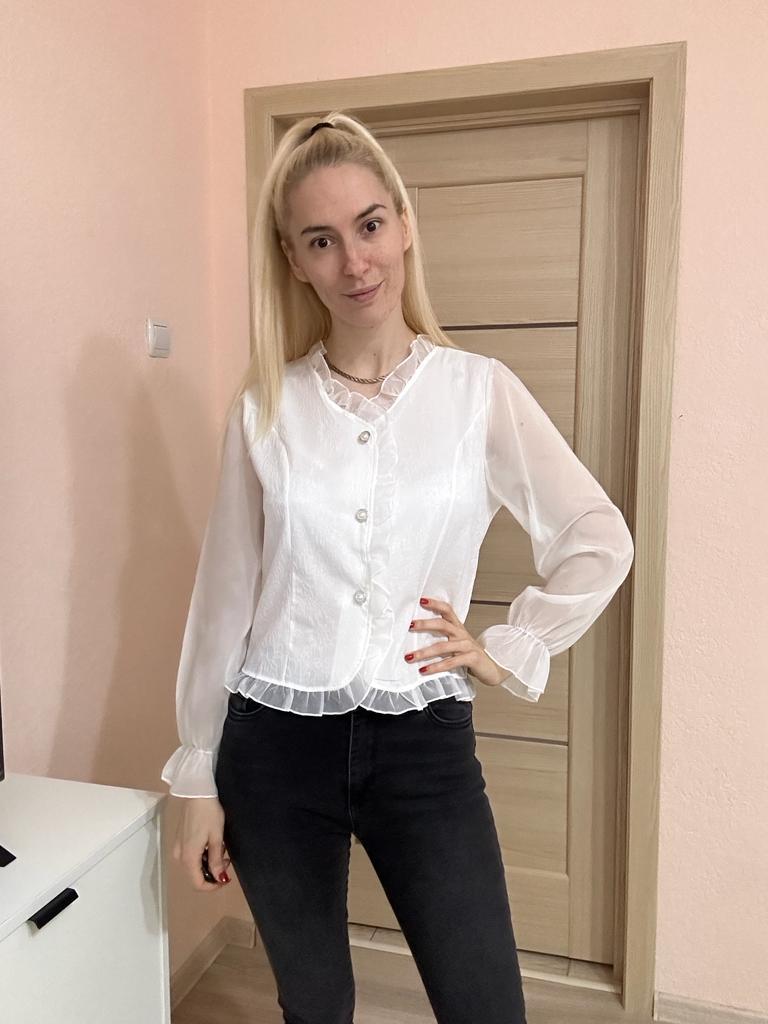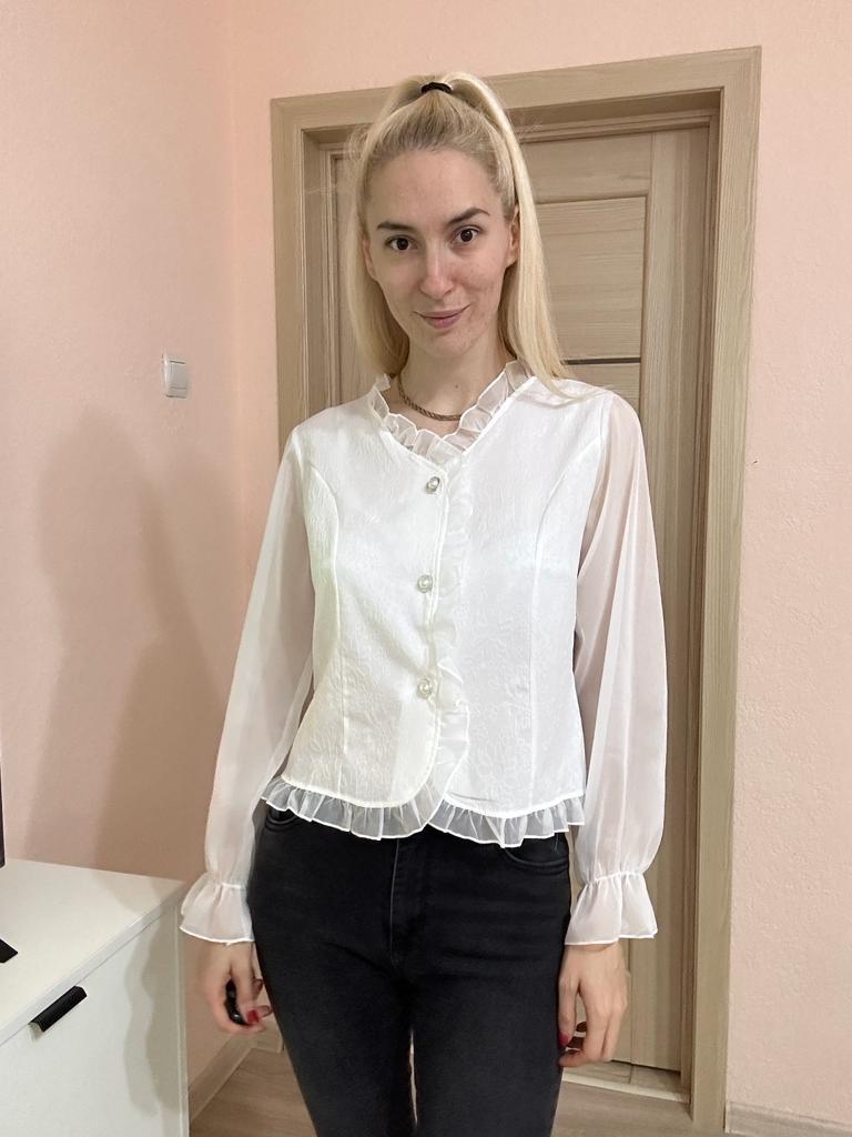 Dressy blouse! Looks very gentle! Fit perfectly in size! Thanks a lot!