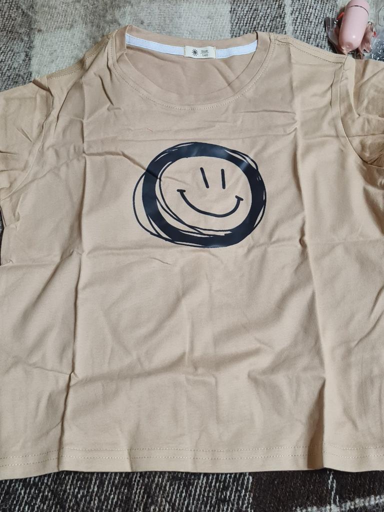 Children Unisex Boys Girls Summer Short Sleeve O Neck Cotton Smile Face Printed Cute T Shirt Top — buy online with free worldwide shipping!